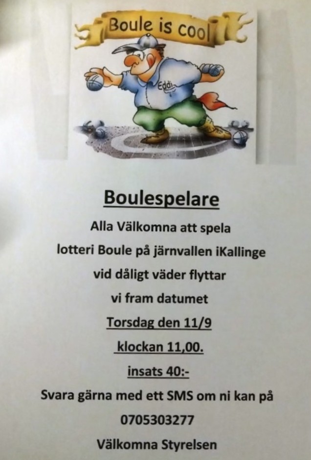 Lotteriboule på Järnvallen den 11 september kl 11.00