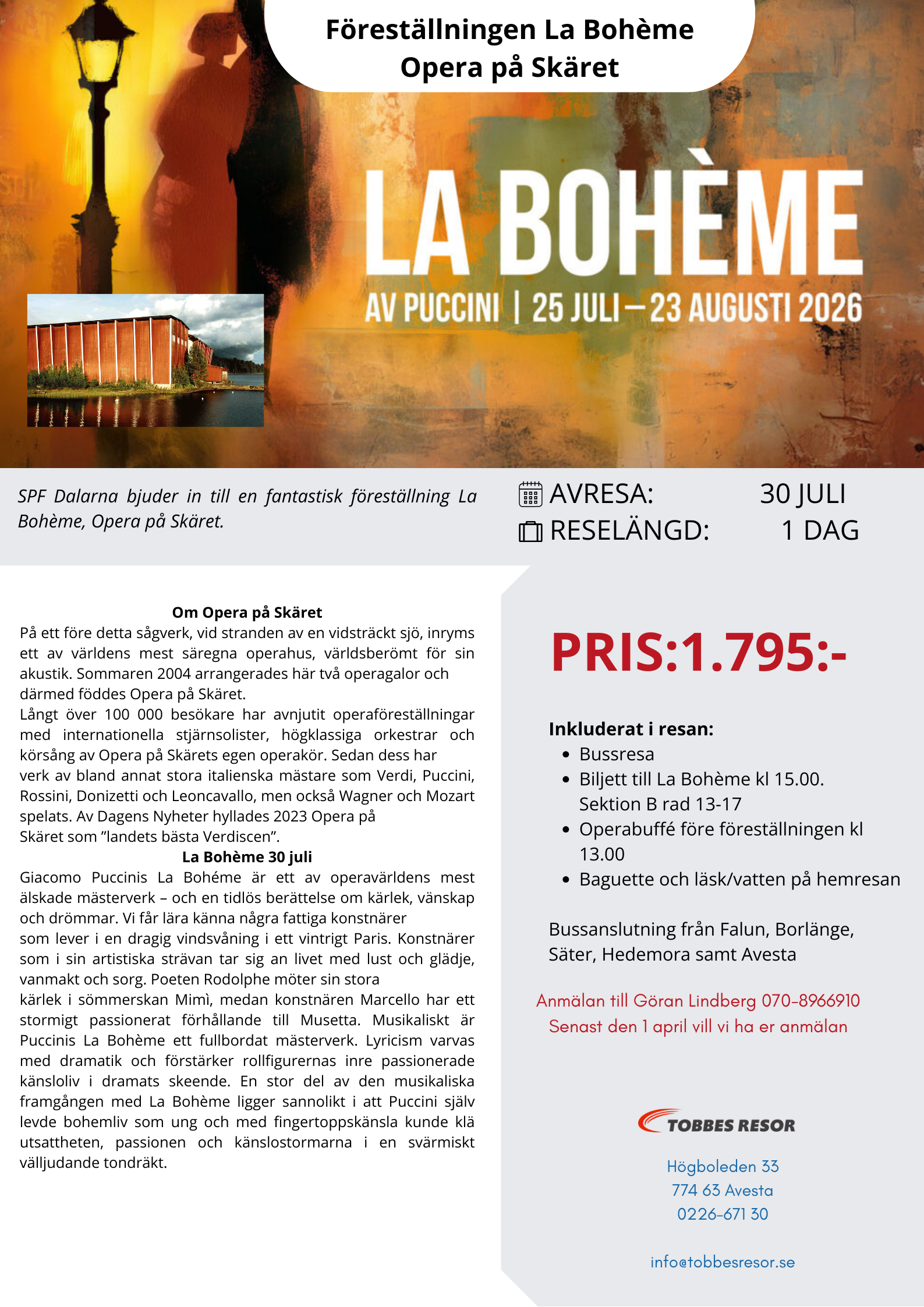 Operaföreställningen La Bohéme på Skäret den 31 juli 2026