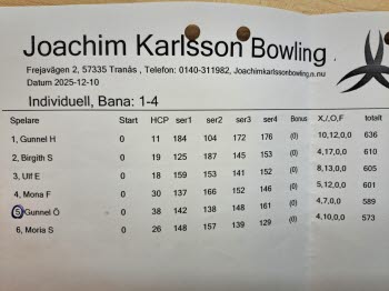 Julavslutning bowlingen 10 december 2025