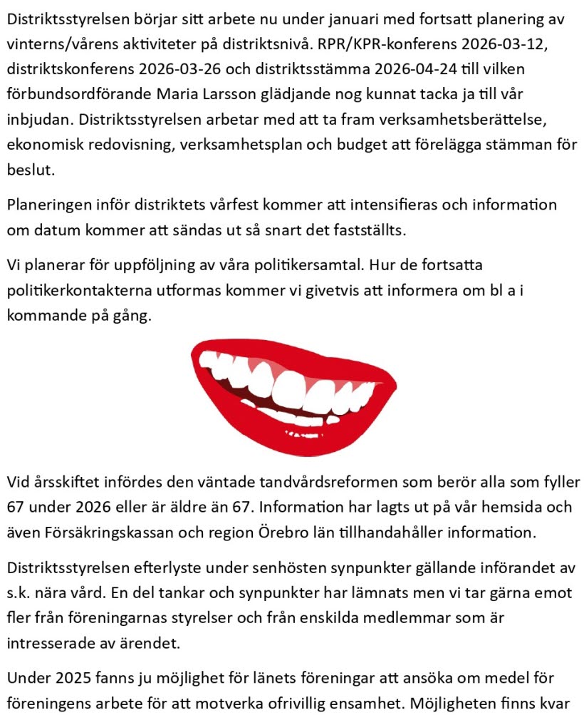 Årets första på gång inleds med en tillönskan om god fortsättning på det nya året -2026. Vi kan också konstatera att Kung Bore har tagit länet i ett fast grepp vilket kanske gör att alla aktiviteter som börjar ”dra igång” i länets föreningar blir extra viktiga.