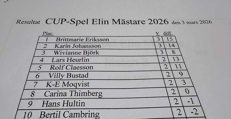 Idag har vi korat SPF Elin-mästare för 2026. 22 boulesugna ställde upp i vårt mästerskap och efter tre lottade matcher hade vi fått fram en vinnare och som segrare stod Brittmarie Eriksson. Det var ett trevligt arrangemang med mycket nöjda deltagare.