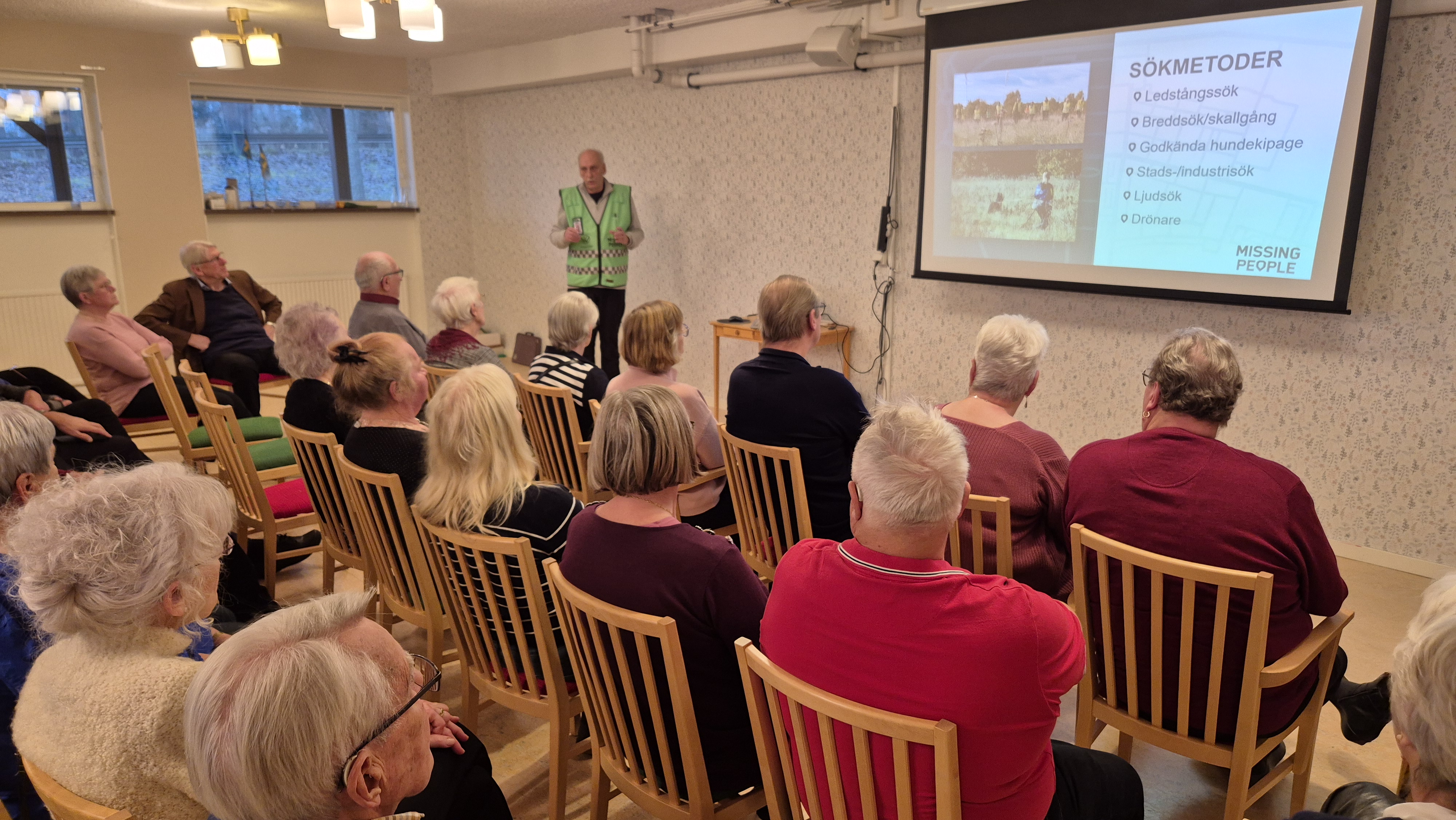 Kent Möller Andersen från Missing People berättade om det som inte får hända men ändå sker. De nästan 50 åhörarna visste inte så mycket om hur denna viktiga ideella, rikstäckande organisation fungerade. Kent berättade att de hjälper Polis och anhöriga när någon anhörig eller bekant bara försvinner. Det kan bero på sjukdomar, polisiära händelser och mycket mer.
