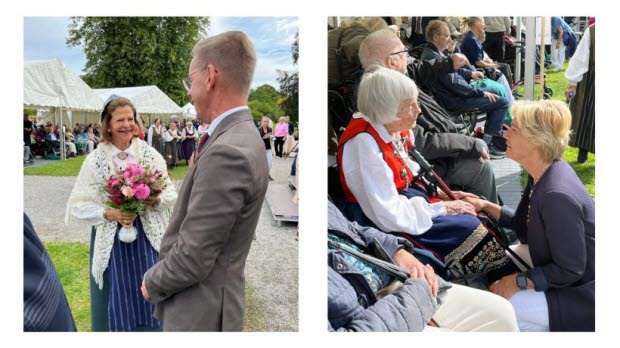 Från SPF Seniorerna deltog förbundsordförande Maria Larsson och generalsekreterare Peter Sikström, som tillsammans med Drottningen och alla hedersgäster från Ekerö kommuns äldreboende och hemtjänstverksamhet fick ta del av en dag fylld av värme, gemenskap och glädje. Gästerna bjöds på picknick i parken, och Drottningen passade som alltid på att personligen hälsa på alla gäster och deras anhöriga. Av tradition bar hon dagen till ära Lovödräkten.