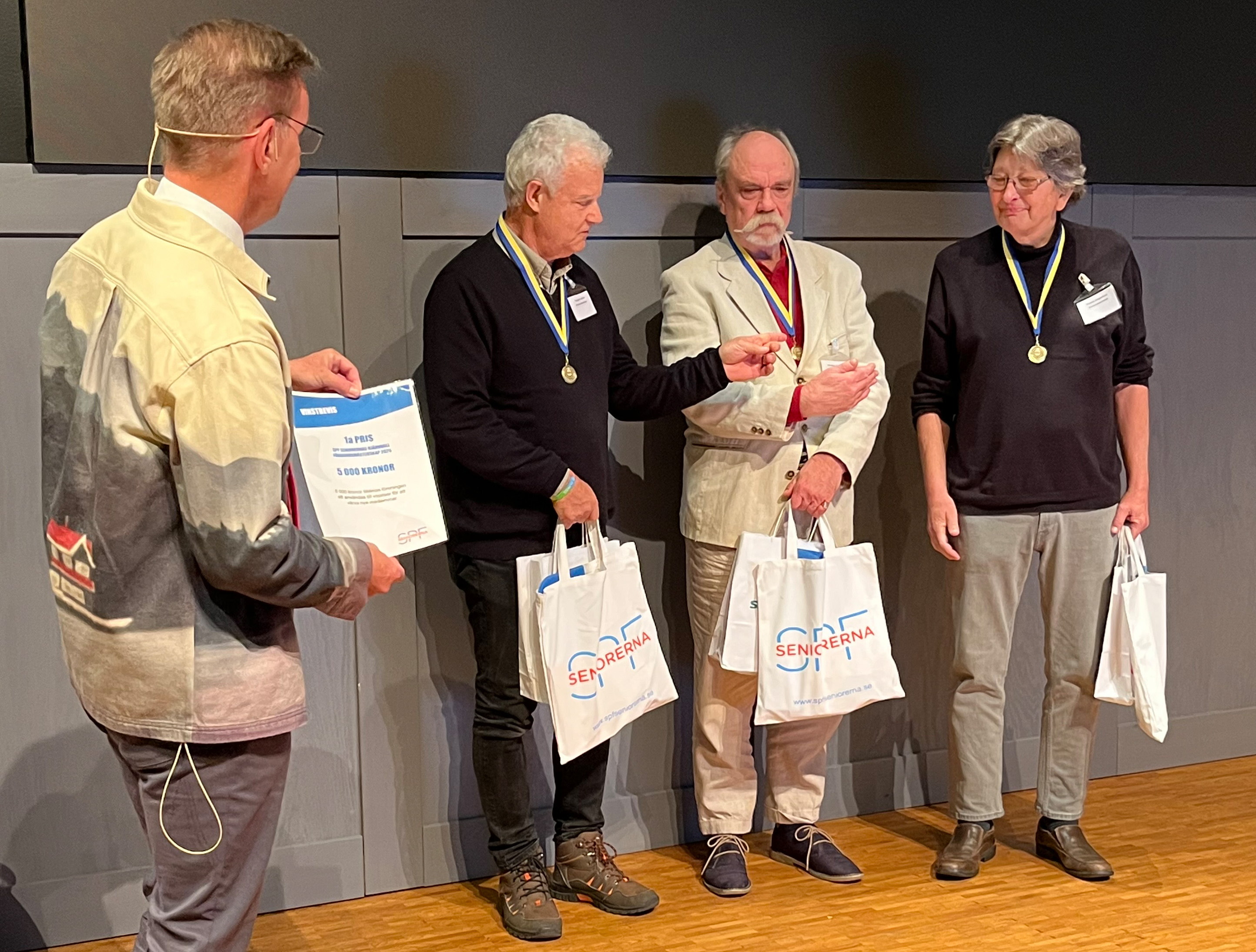 Vinnarna av årets förbundsmästerskap i Hjärnkoll, Örebrodistriktet, tog emot varsin medalj, gåvokasse och 5 000 kronor som tilldelas föreningen (SPF Seniorerna Hallsberg) att användas till insatser för att värva nya medlemmar.