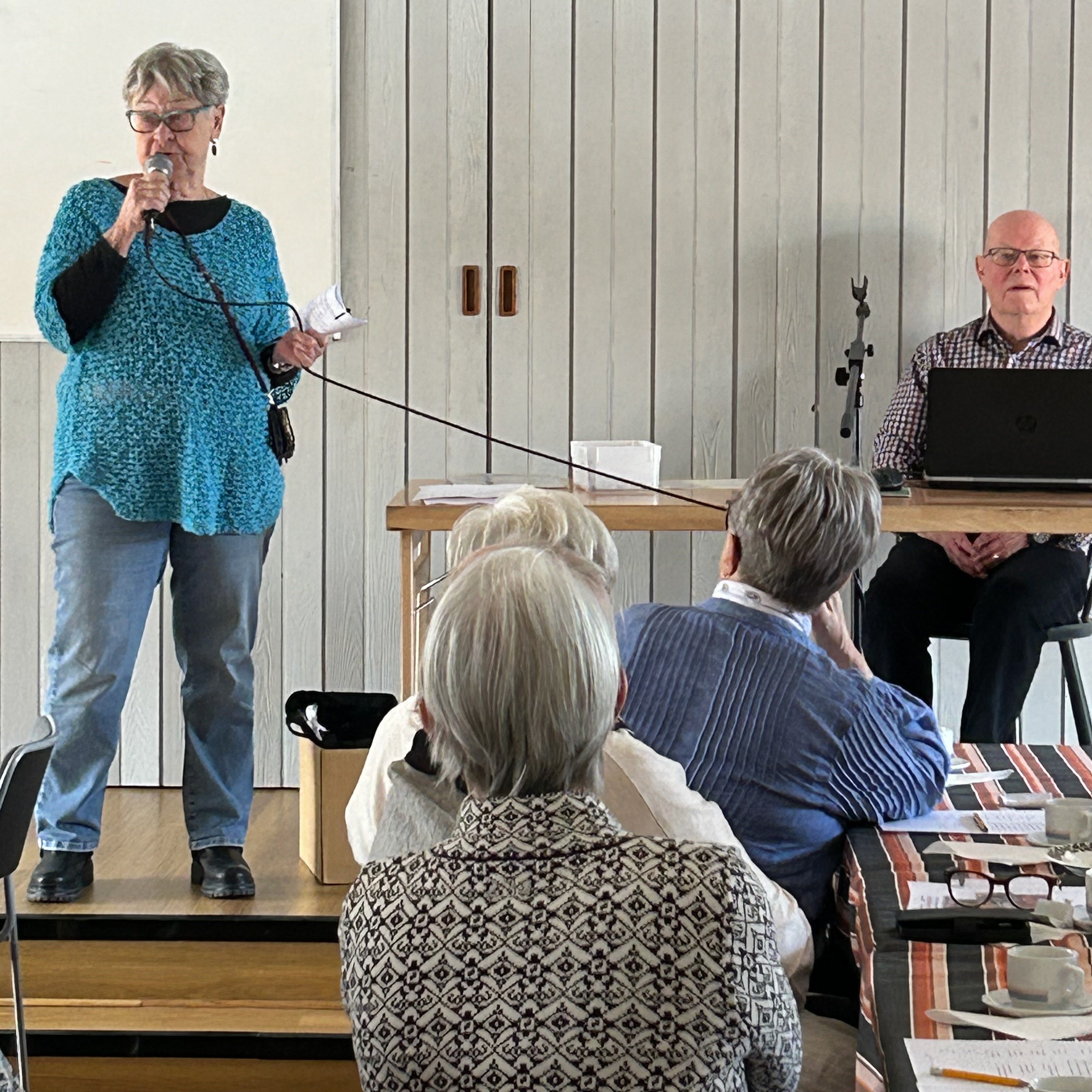 När föreningens nya ordförande Birgitta Löfstedt hälsat alla välkomna, genomförde Thomas Mattsson sin lättsamma och populära musiktävling. Det var 12 st. omväxlande frågor om musik som passade seniorerna mycket bra. Bland de som hade flest rätt, lottades det fram tre pristagare.