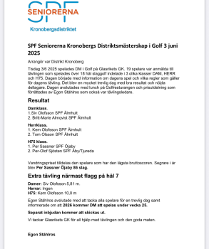 SPF Öjaby var väl representerat vid årets distriktsmästerskap och vi gratulerar Per Sassner till titeln Distriktsmästare.