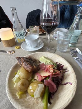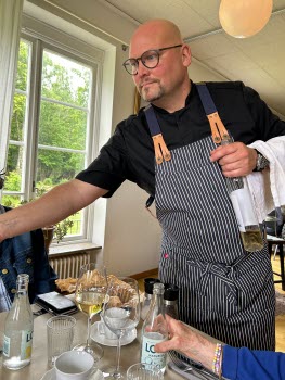 Färden gick vidare till Ivösjön där vi åkte färjan till Ivön. På Ivögården berättade ägarna Terese och Petter om sitt företag med bland annat sin vinproduktion. Vi blev serverade en utsökt lunch och fick möjlighet att till den smaka gårdens eget vin. Man har cirka 1000 vinplantor.