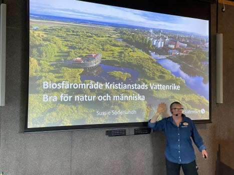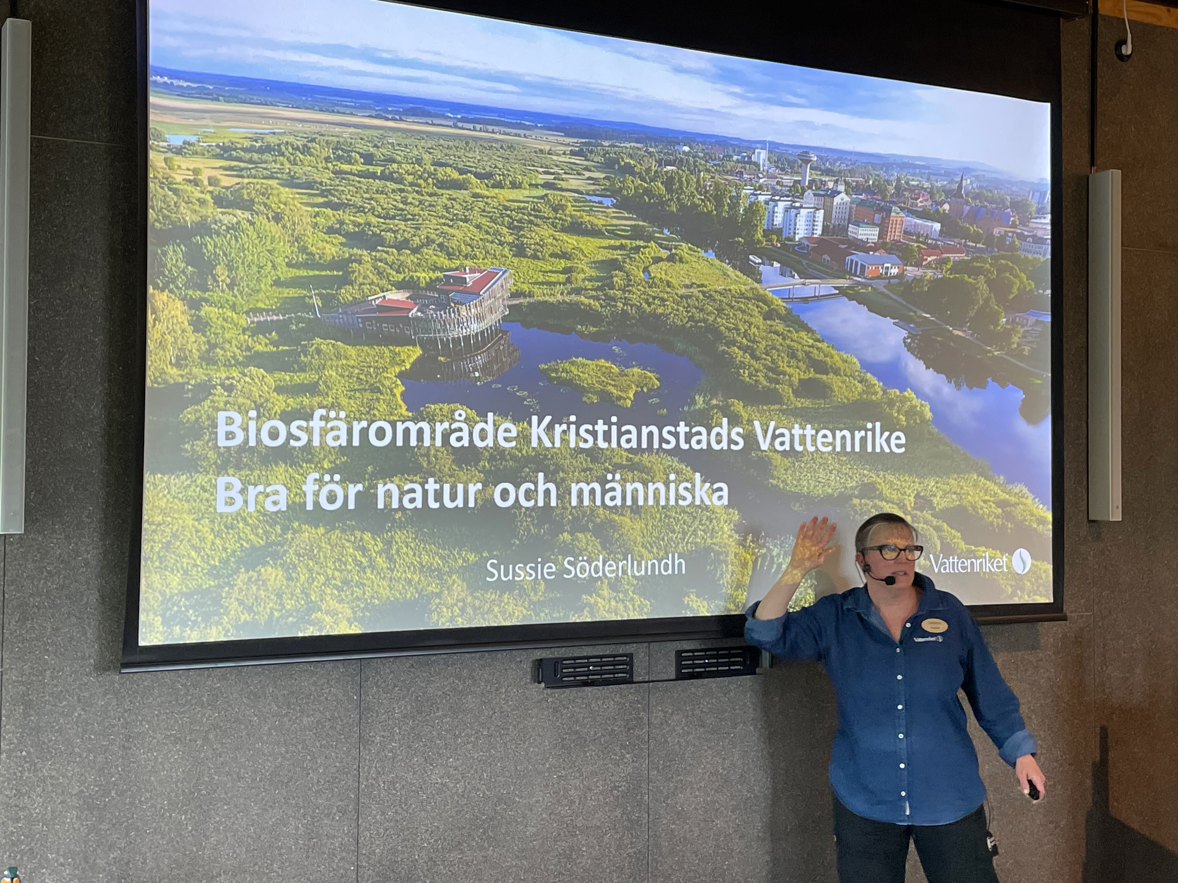 Mätta och belåtna fortsatte resan till "Naturum" i Kristianstad där Sussie Söderlund berättade om verksamheten.