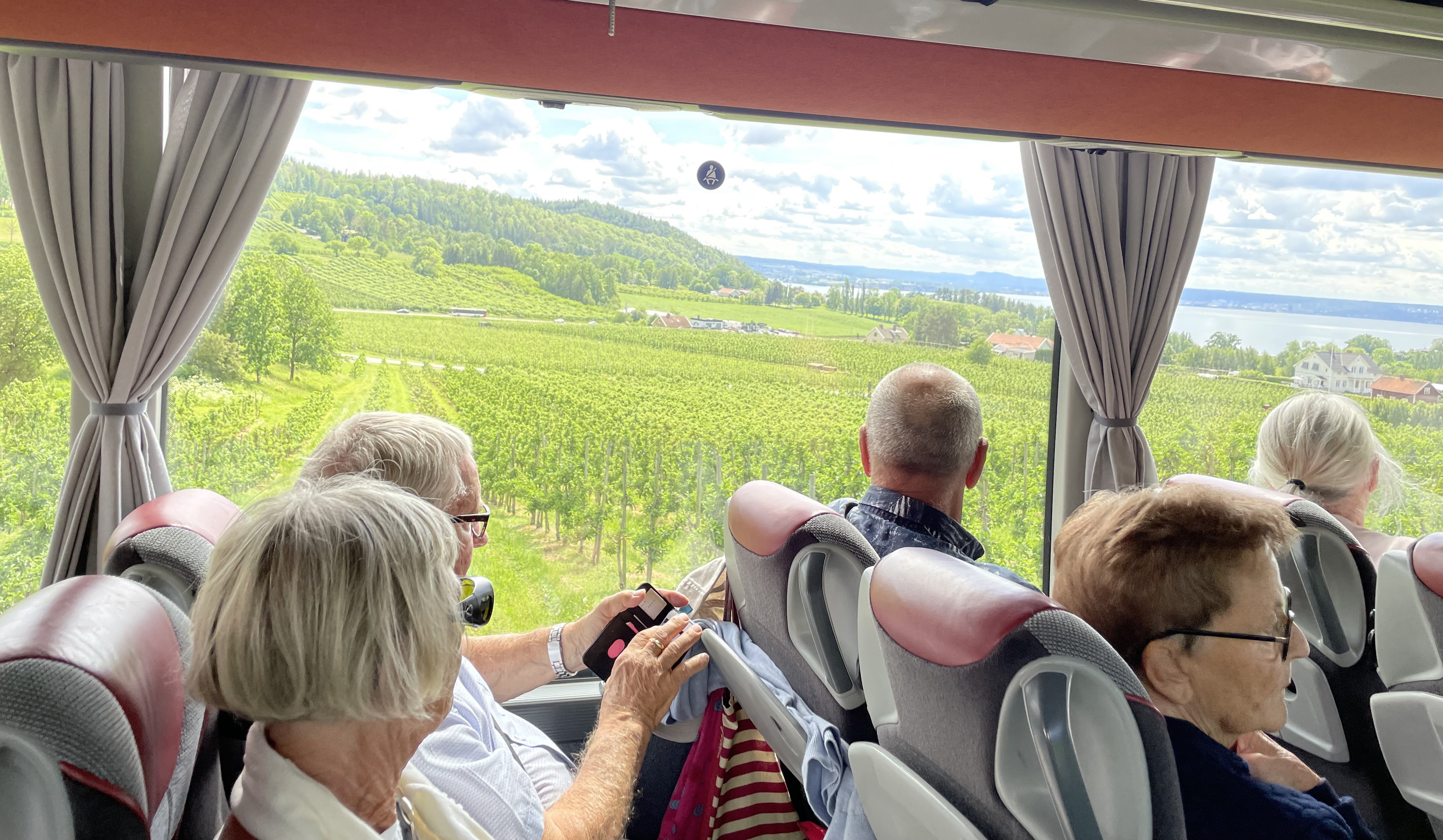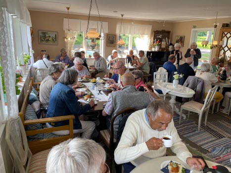 Vår duktige reseledare Carl-Johan tog oss idag norrut och första stoppet var Kroatorpet i Husqvarna där vi med vacker utsikt över Vättern fick vårt förmiddagsfika.