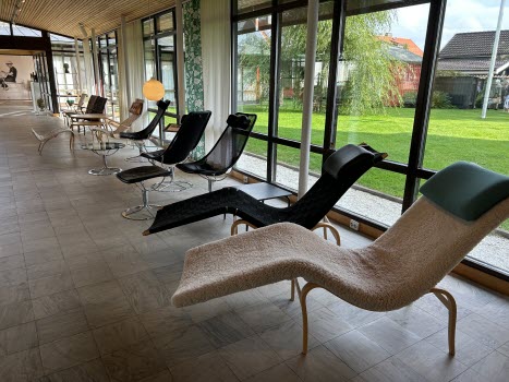 Det blev god lunch och guidning i lokalerna. En stor utställning av Lisa Larssons verk. Vi fortsatte till Bruno Mathsson center för en guidad tur. Dagen avslutades med fika i Apladalen.