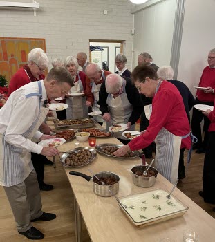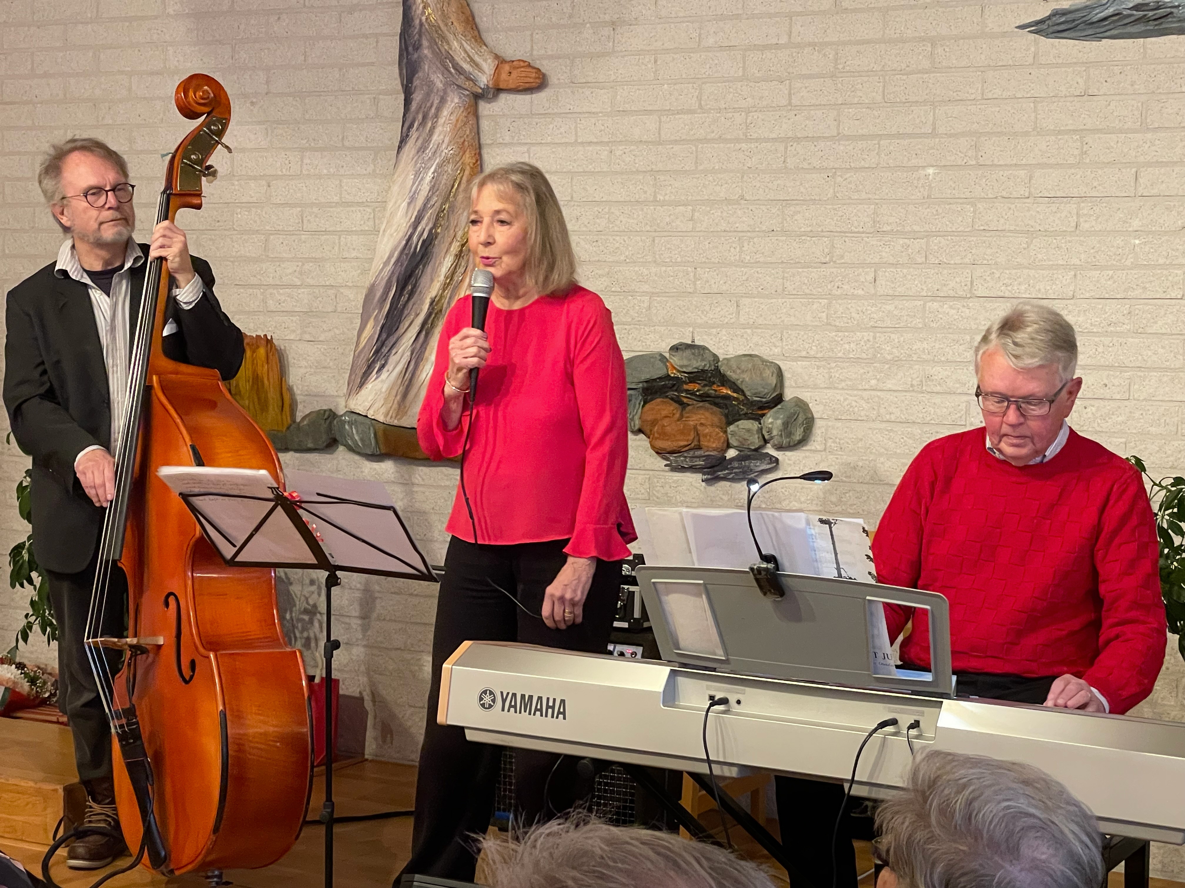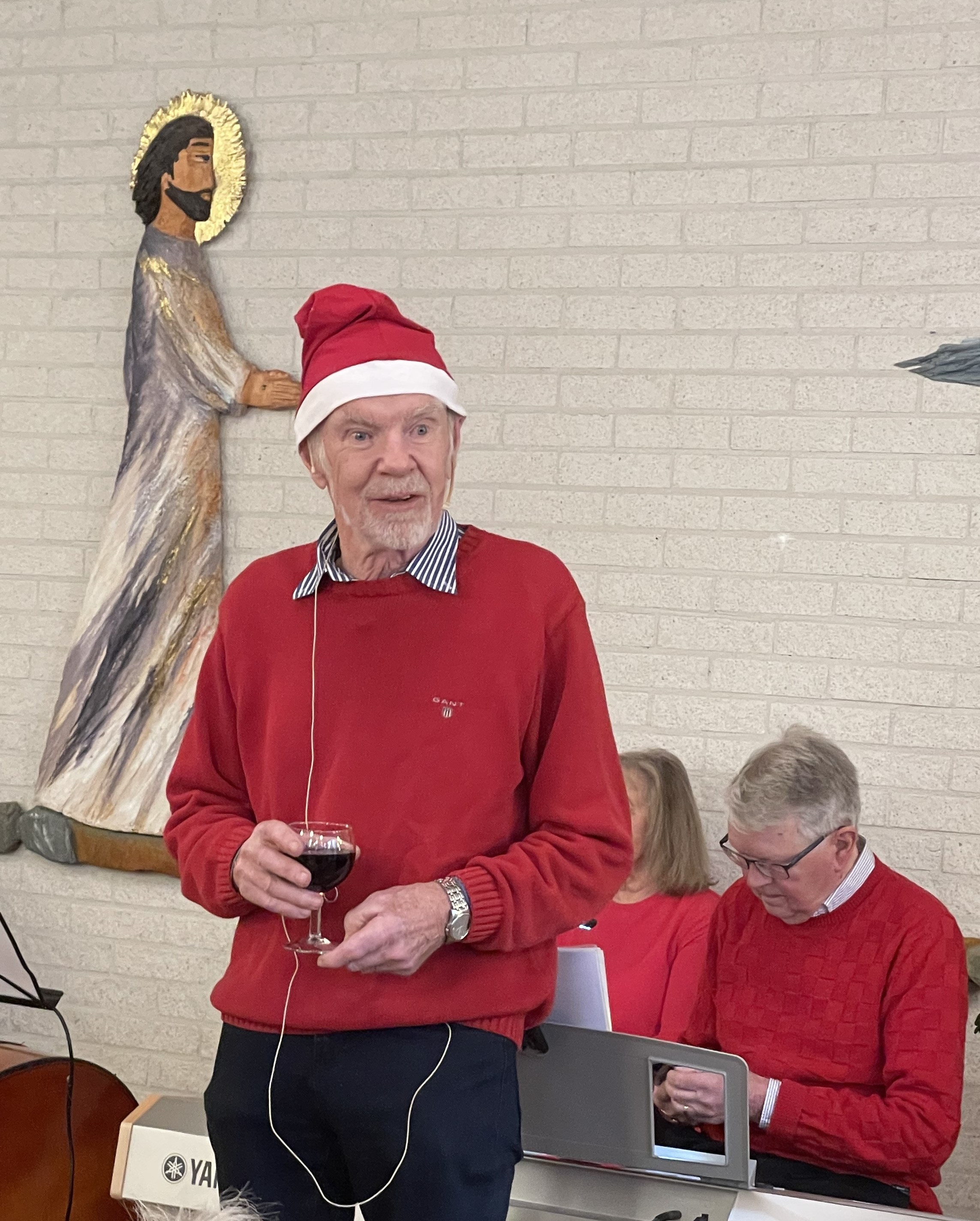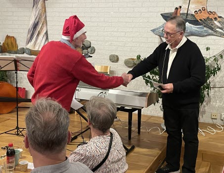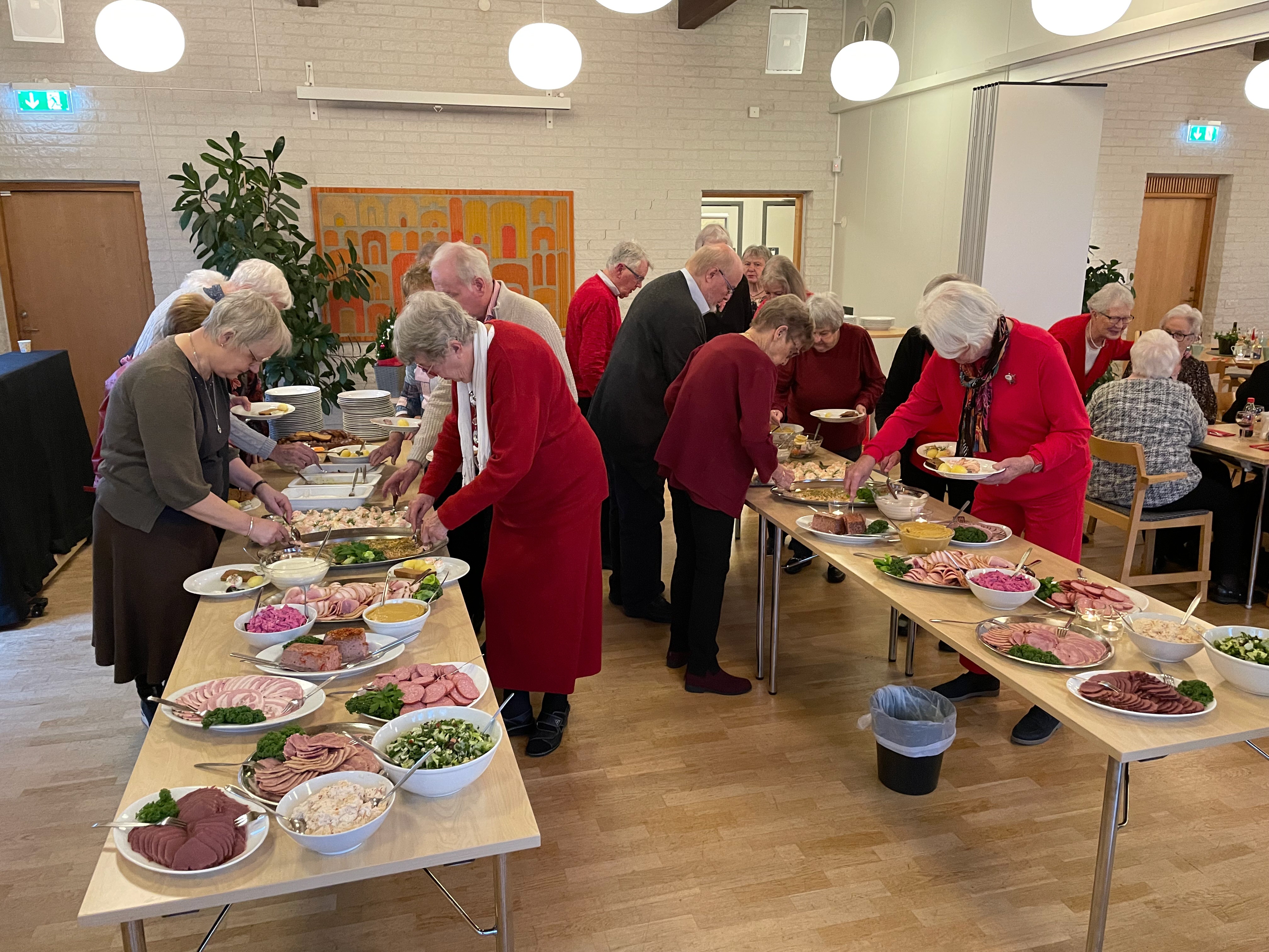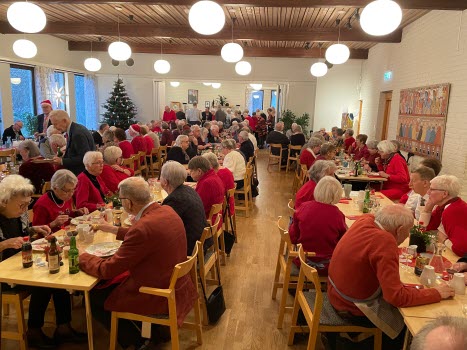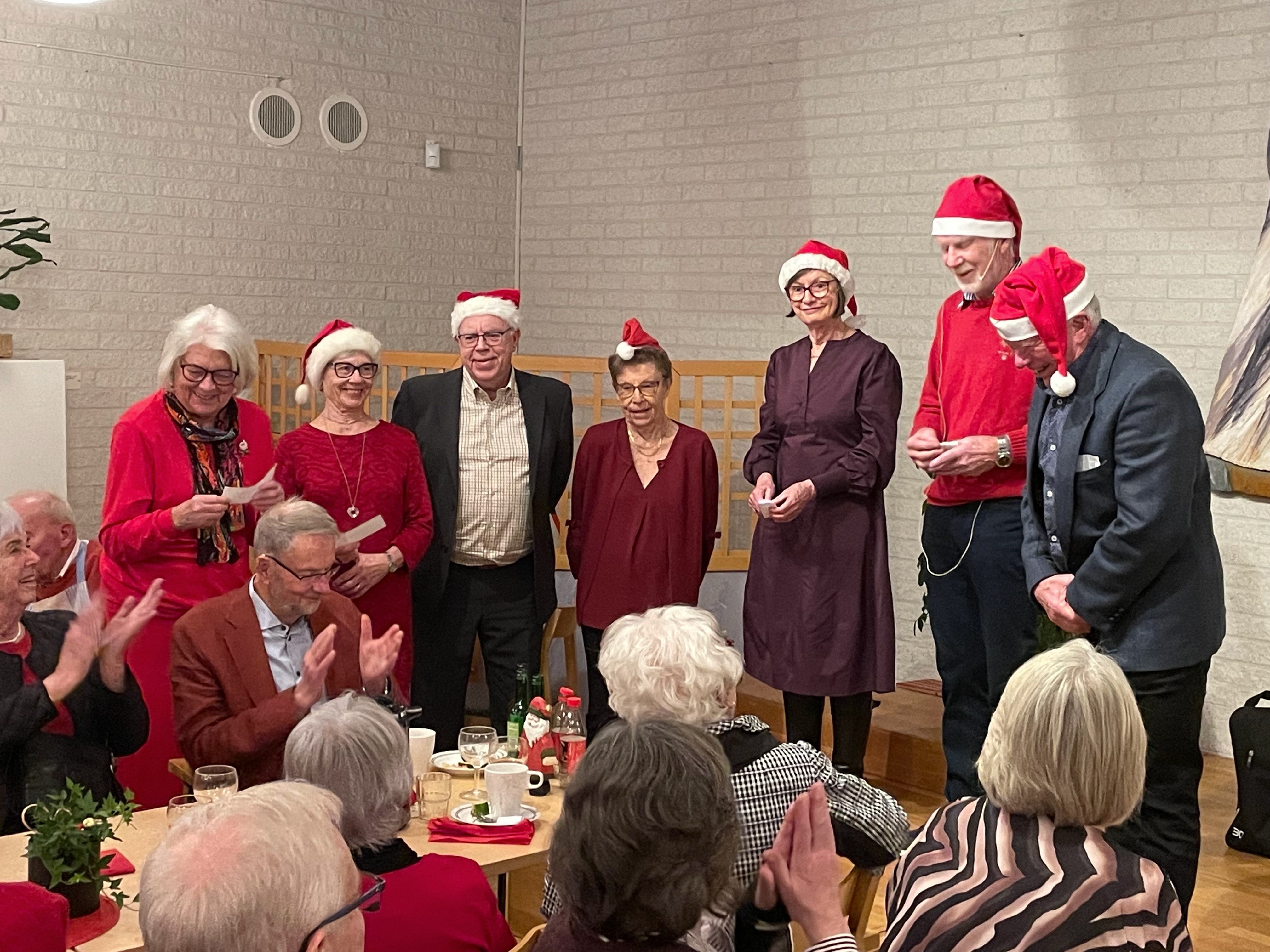 I ett fullsatt församlingshem samlades vi idag för Julfest med Julbord. Vår för dagen med tomteluva försedd ordförande Carl- Johan hälsade oss välkomna och gav oss information om vad som hänt och som skall hända. Ulla sålde lotter och vi bjöds på ett gott julbord. För underhållningen svarade Torgny Samuelssons trio, Torgny, Viola och Lars med fin sång och musik. Kaj Boberg överlämnade en grundplåt till en Hjärtstartare till föreningen. Efter lotteridragningen avslutade styrelsen med att unisont önska oss alla en God Jul och Ett Gott Nytt År.