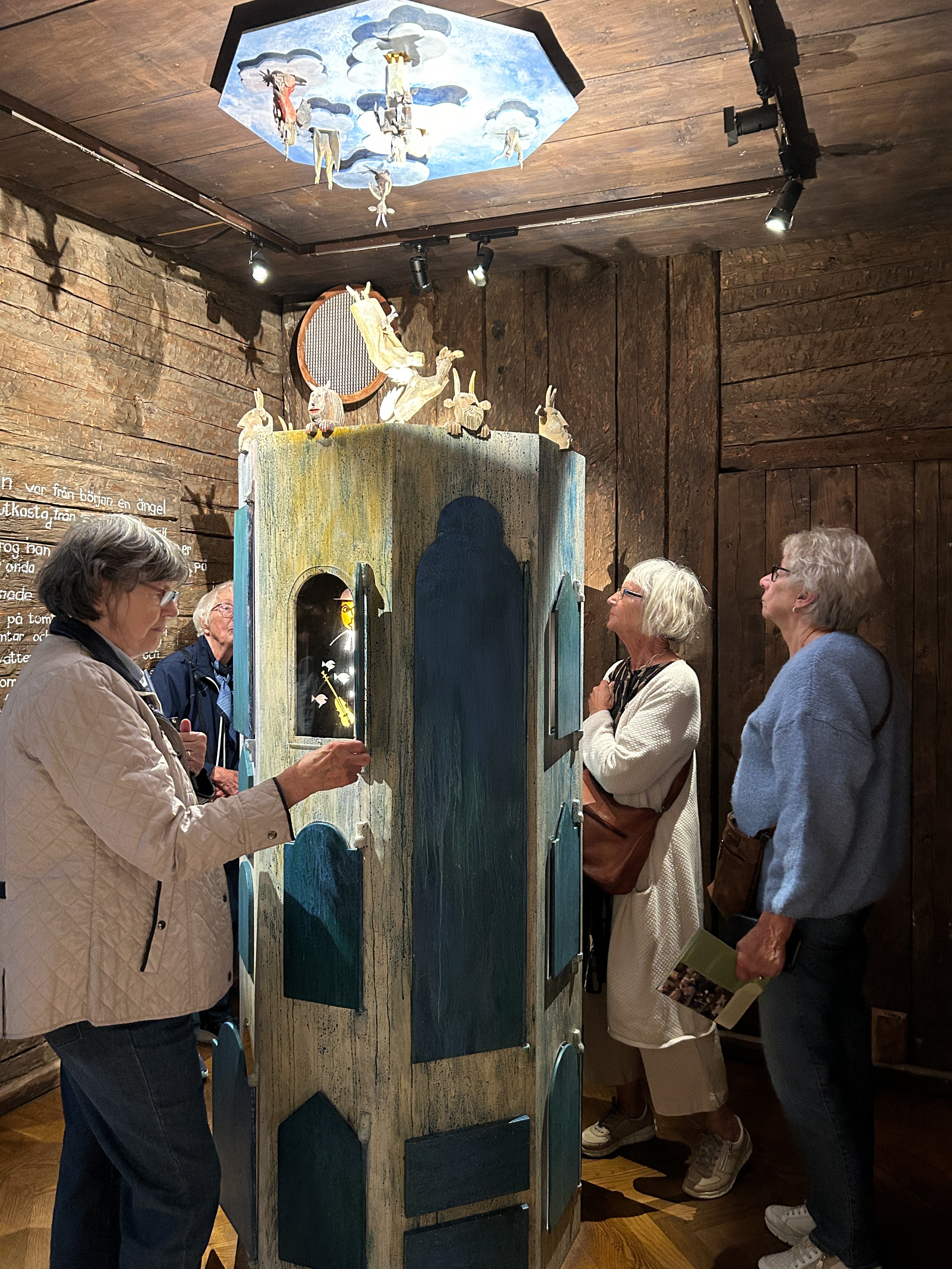 Idag tog ordförande Carl-Johan med oss på en KUL-TUR till Ljungby. Vi började med ett besök på Minivärden där vi efter morgonfikat fick se en imponerande anläggning av tågbanor och mycket annat. Nästa besök blev Sagomuséet där vi fick berättat om vättar och troll på ett fantastiskt engagerat sätt. En mycket trevlig upplevelse. Det blev så dags för lunch på Gästgivaregården. Färden gick sedan till Ljungbergmuséet där vi också fick en fin guidad tur. Väl hemkomna kunde vi se tillbaka på en riktigt trevlig dag som vi tackar Carl-Johan för.
