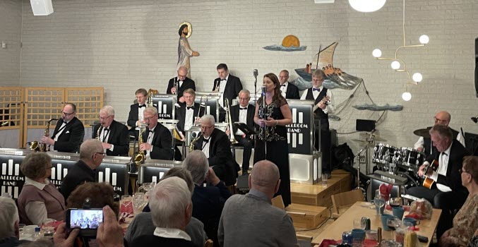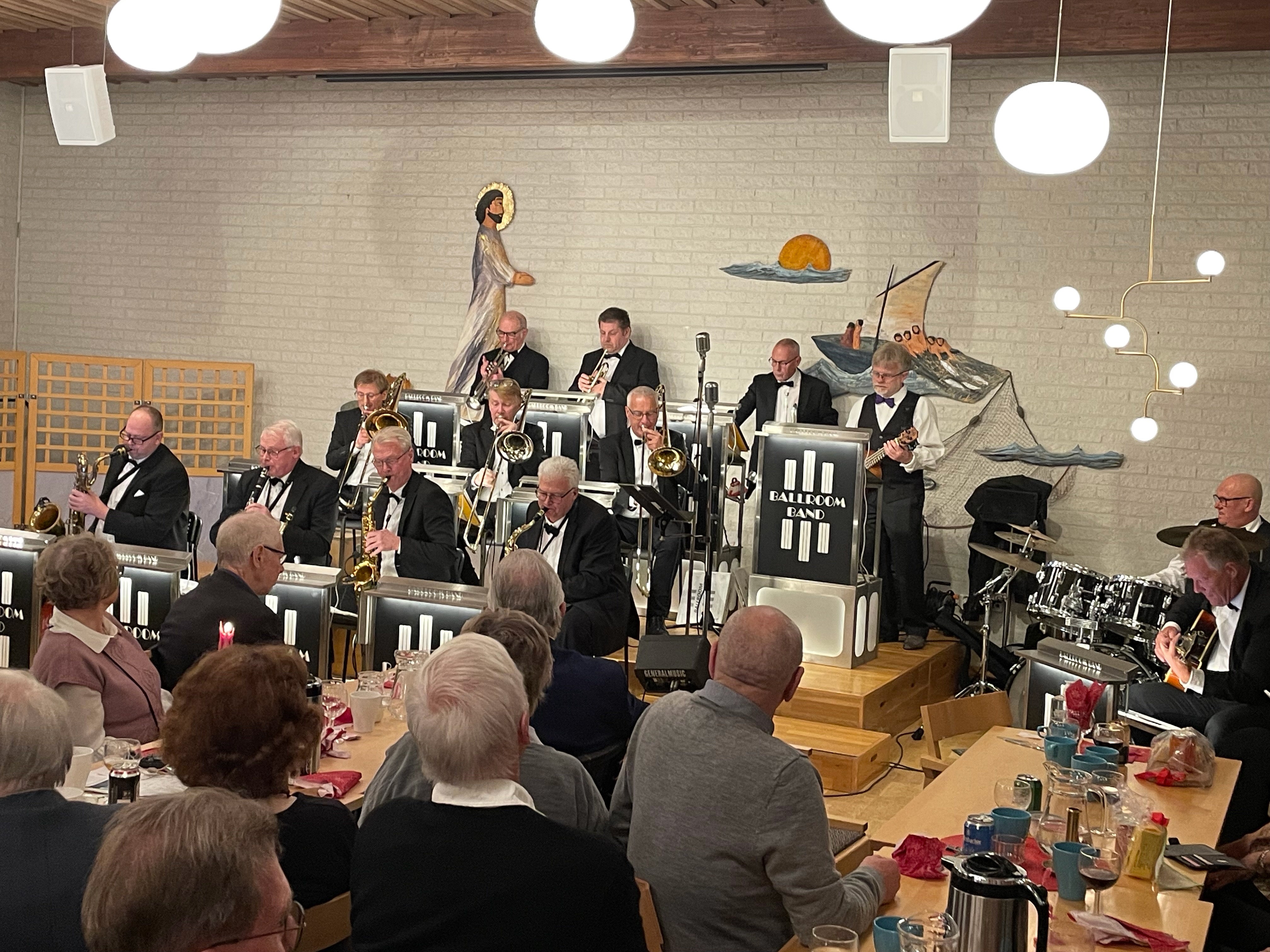 Idag blev det en riktig höjdare. Ett mycket gott julbord med kallt,varmt och ostkaka och en bejublad konsert av BALLROOM BAND som spelade jazzig musik. Det slutade med stående ovationer. Ulla hade ordnat ett fint lotteri.