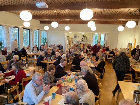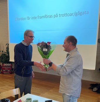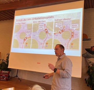 Per på Växjö Nya Trafikskola gav oss en alldeles utmärkt information om hur vi skall bete oss i växjötrafikens rondeller, övergångställen mm. Så blev det kaffe med god smörgås och kaka.