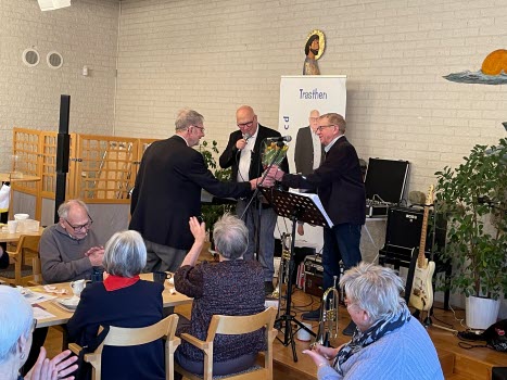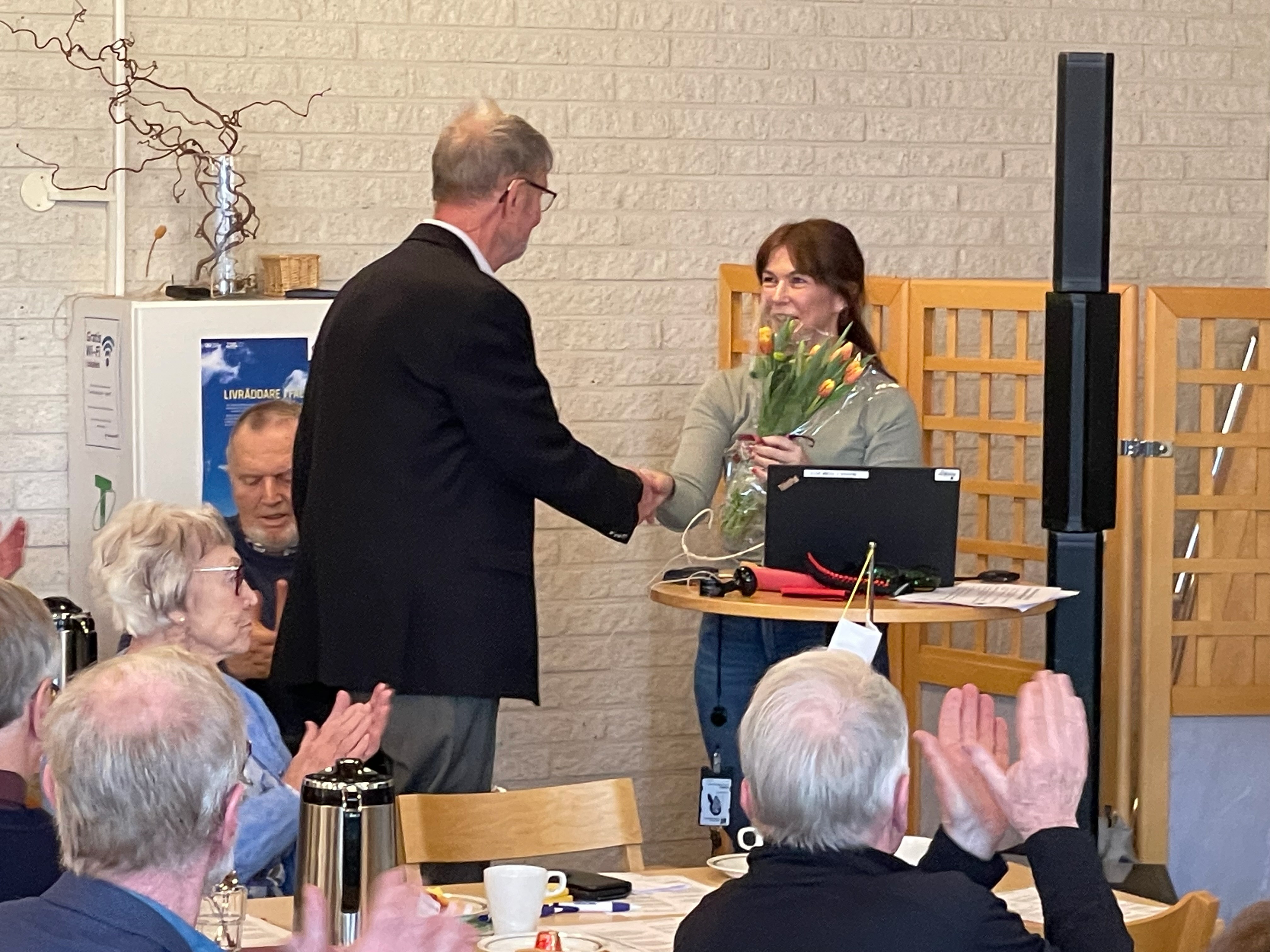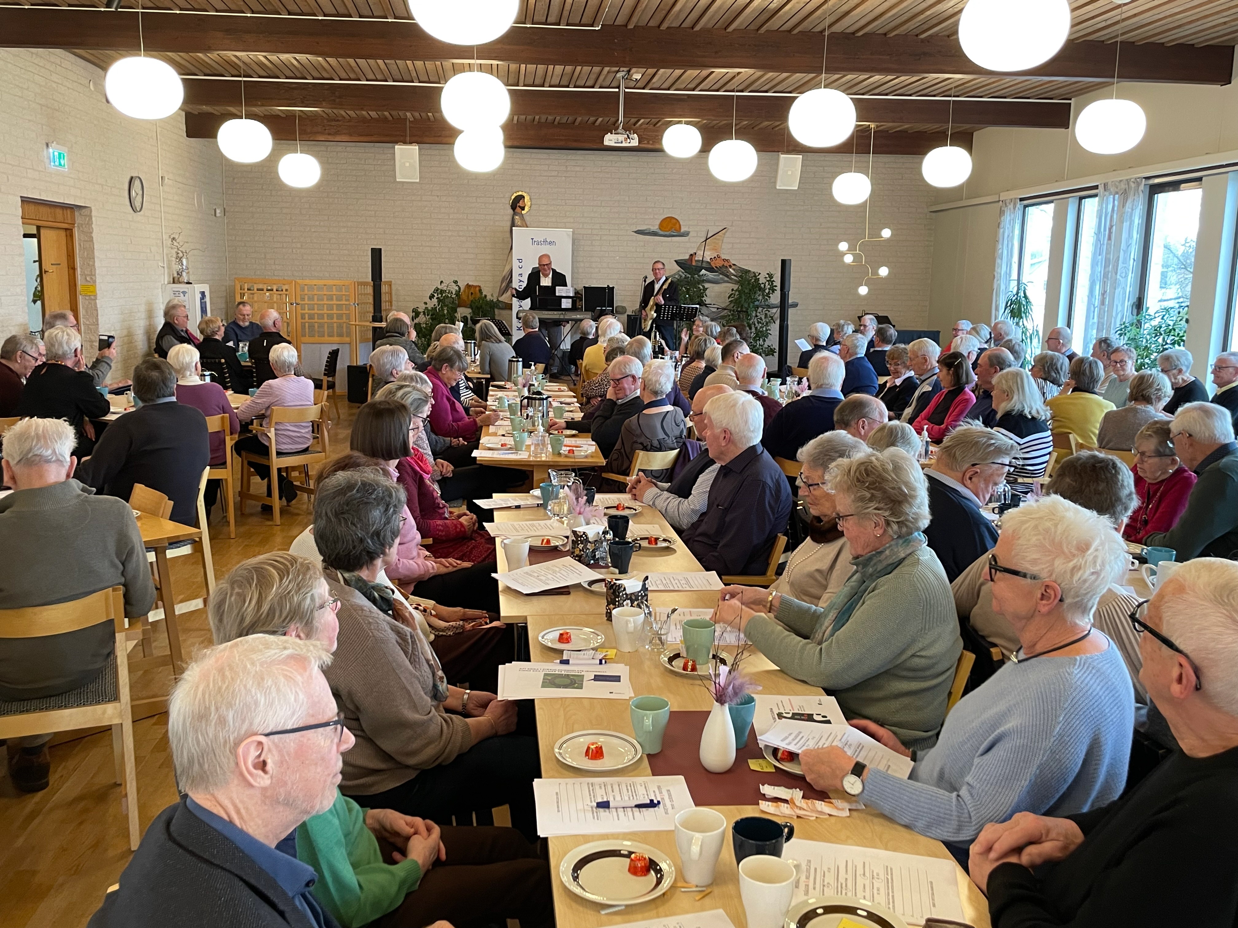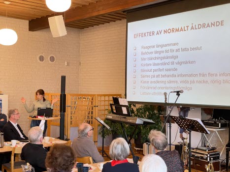 " Äldre och bilkörning " Maria Fogelström från trafikmedicinska enheten berättade för oss. En mycket nyttig genomgång. Sedan intog Ingemar Traste och Gert Blom scenen och det blev glad musik med quiz och allsång. Mycket trevlig eftermiddag.