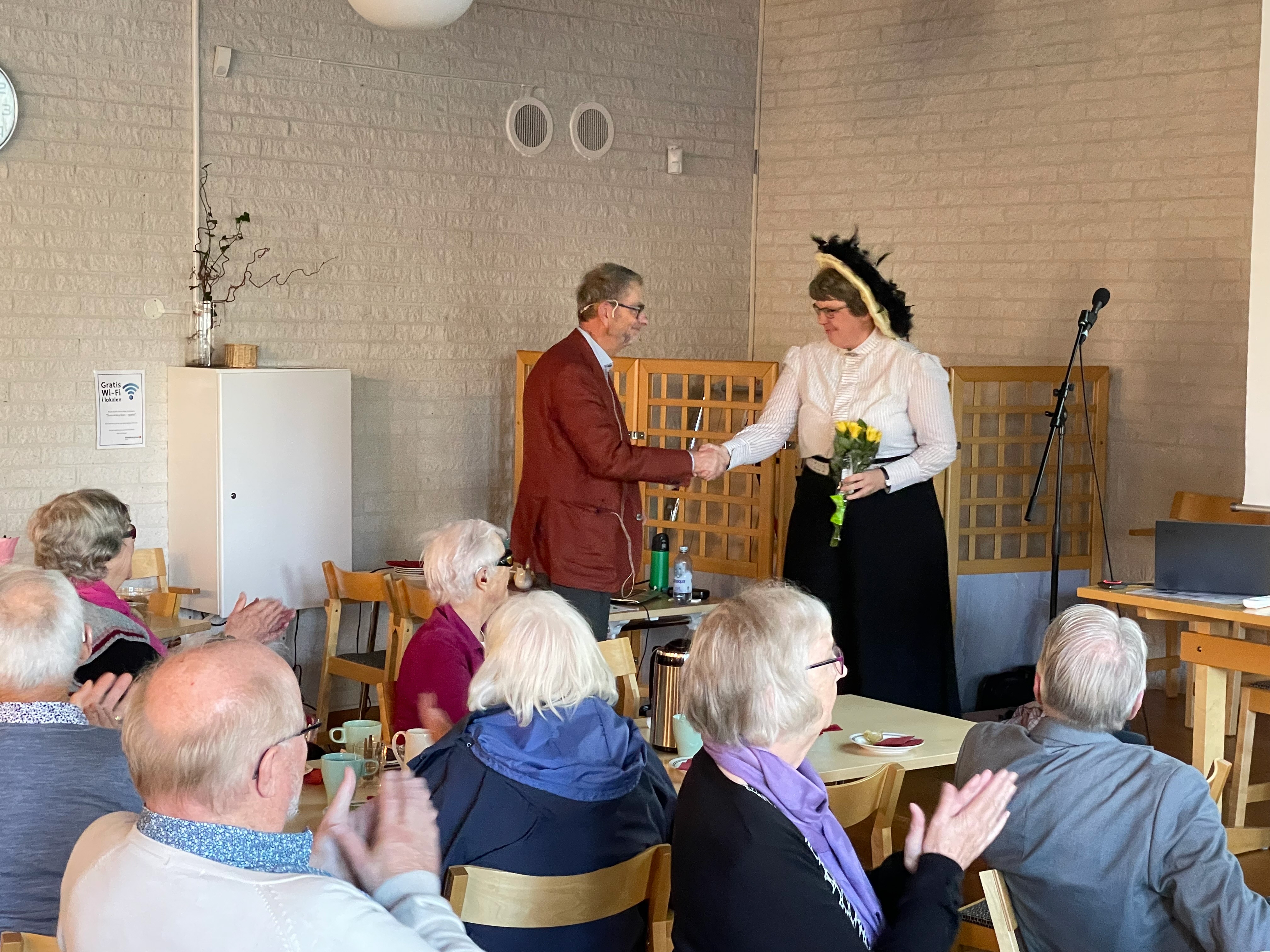 Ett fullsatt församlingshem fick först information om en kommande pensionärsmässa av Ingvar Gustavsson och Kerstin Nilsson redogjorde för sitt arbete i KPR och som kontaktperson för " Vård och omsorg". Efter gott fika fick vi lyssna till Lisbeth Eriksson som föreläste under rubriken " Kvinnorna på Huseby". Mycket uppskattat. En trevlig eftermiddag.