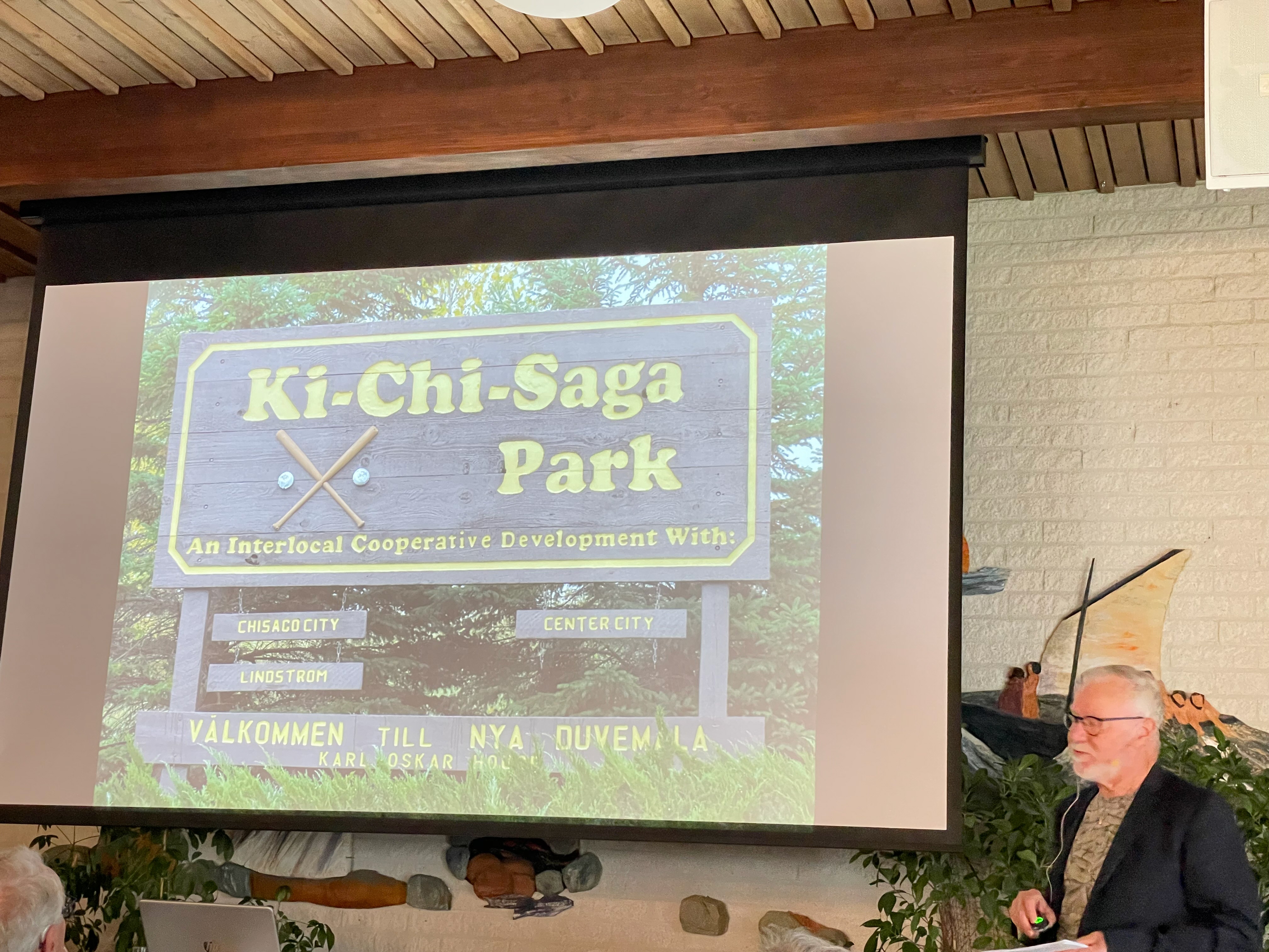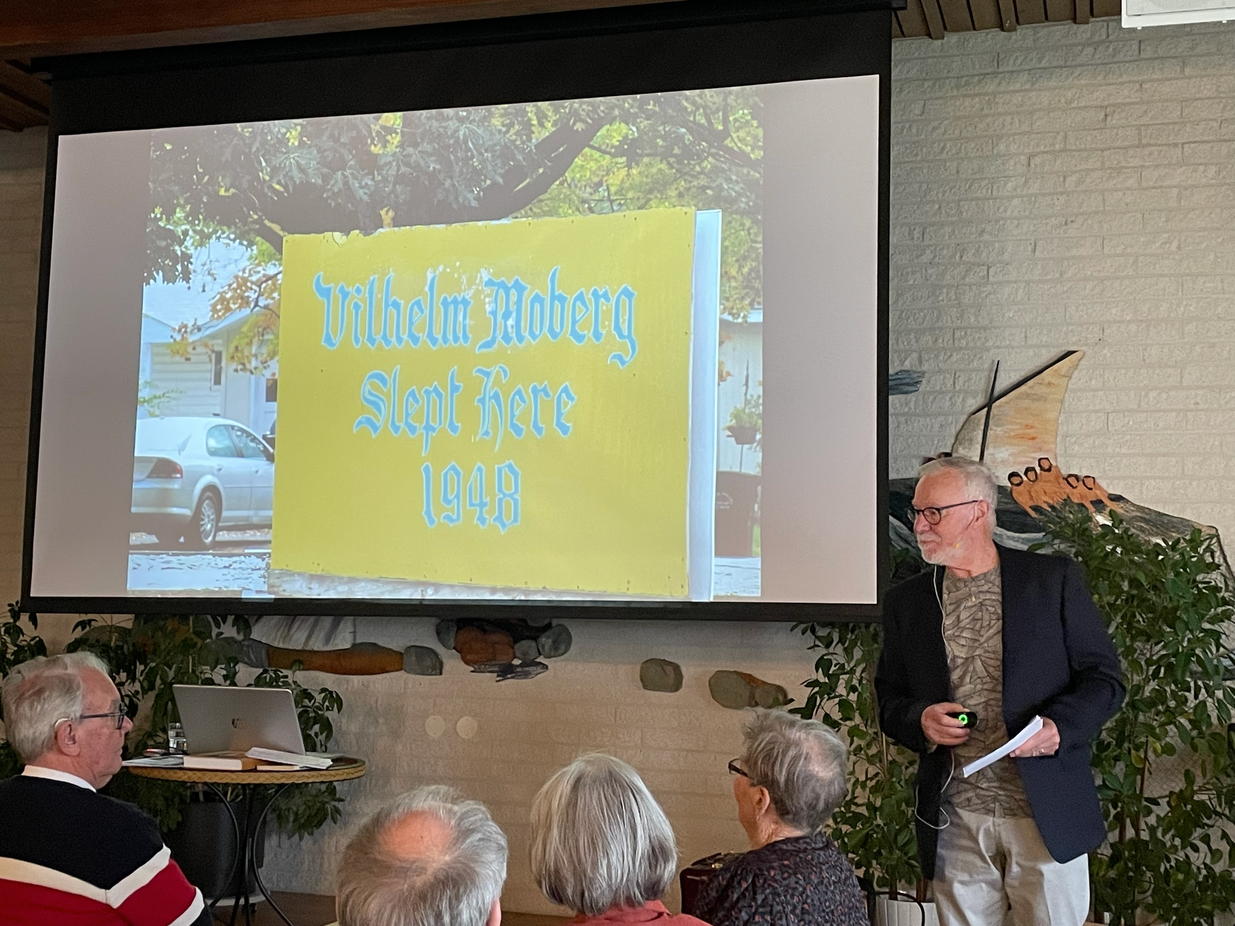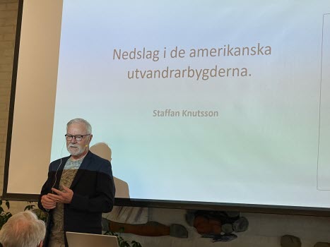 Emigrationen till USA i den amerikanska utvandrarbygden. Staffan Knutsson lärare, författare och medarbetare i Nationalencyklopedin berättade och visade bilder. Ett mycket intressant föredrag. Kaffe, macka och lotteri. En fin eftermiddag.