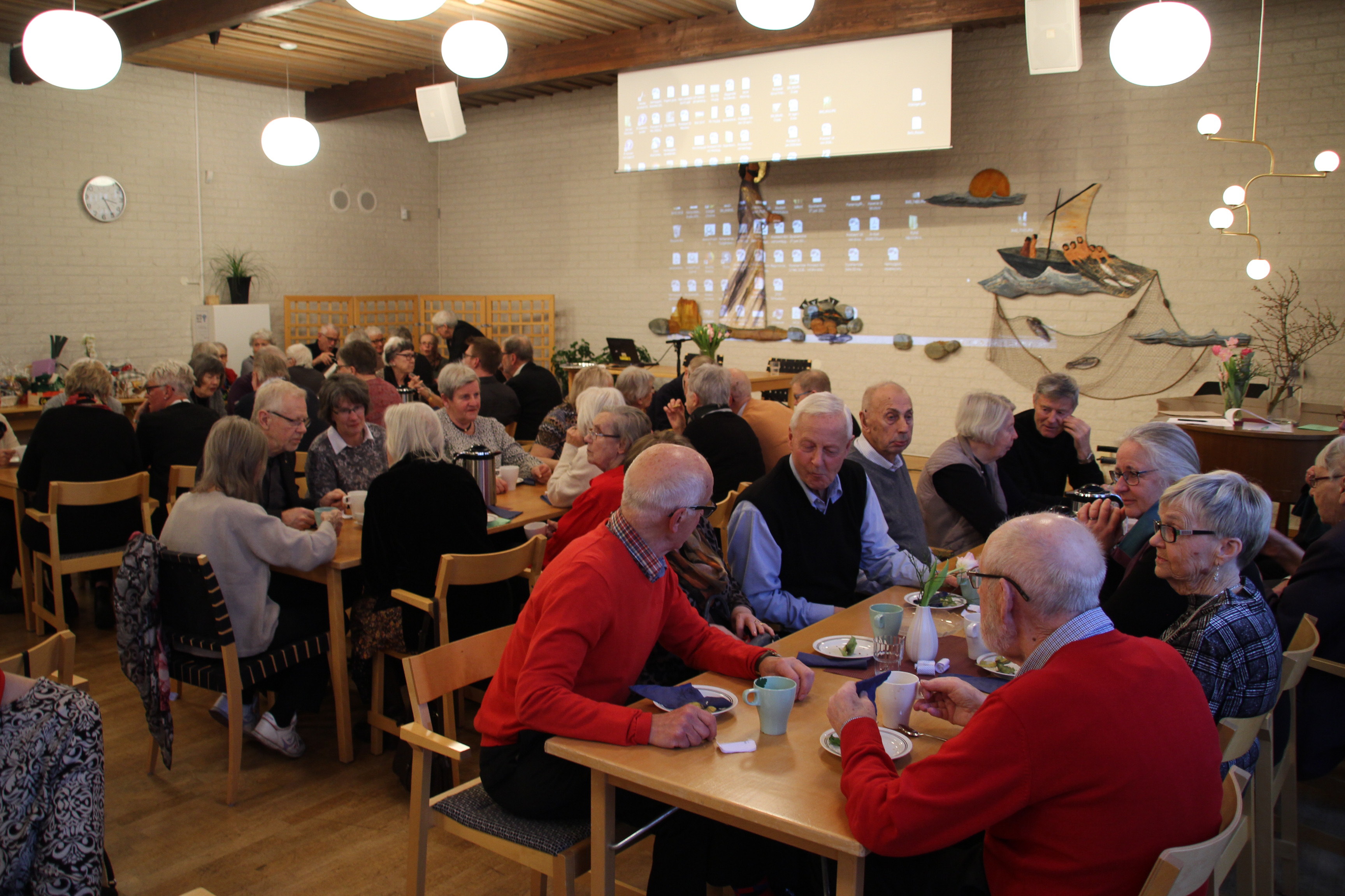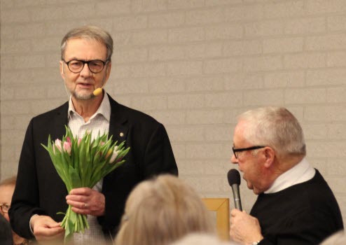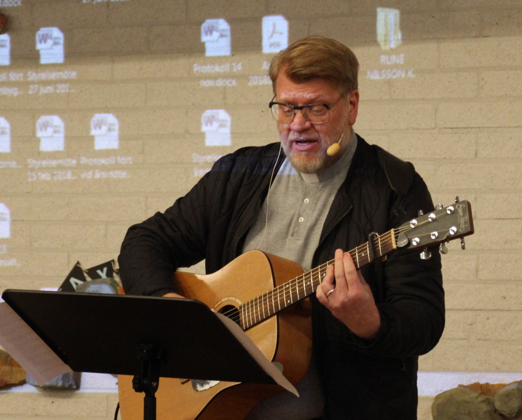Carl-Gustaf som nyligen jubilerat. Lars Gunnar Selinder informerade om hjärtstartaren som nu finns i församlingshemmet och bjöd oss på vacker sång och musik.