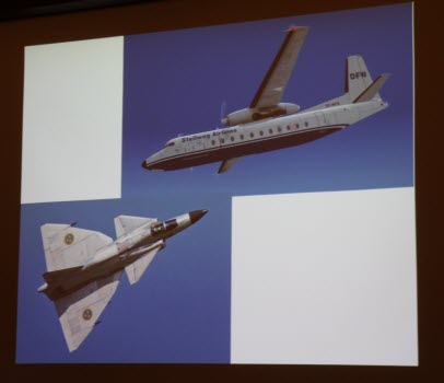 Efter kaffe och god smörgås gästades vi av Samuel Palmblad från Kulturpark Småland. Samuel berättade om flygplatsens tillkomst och händelser genom åren.