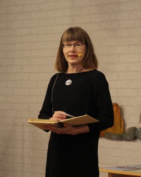 Mary Lou Ward läste sin egen skröna "Två systrar som lärde sig simma i Vättern".