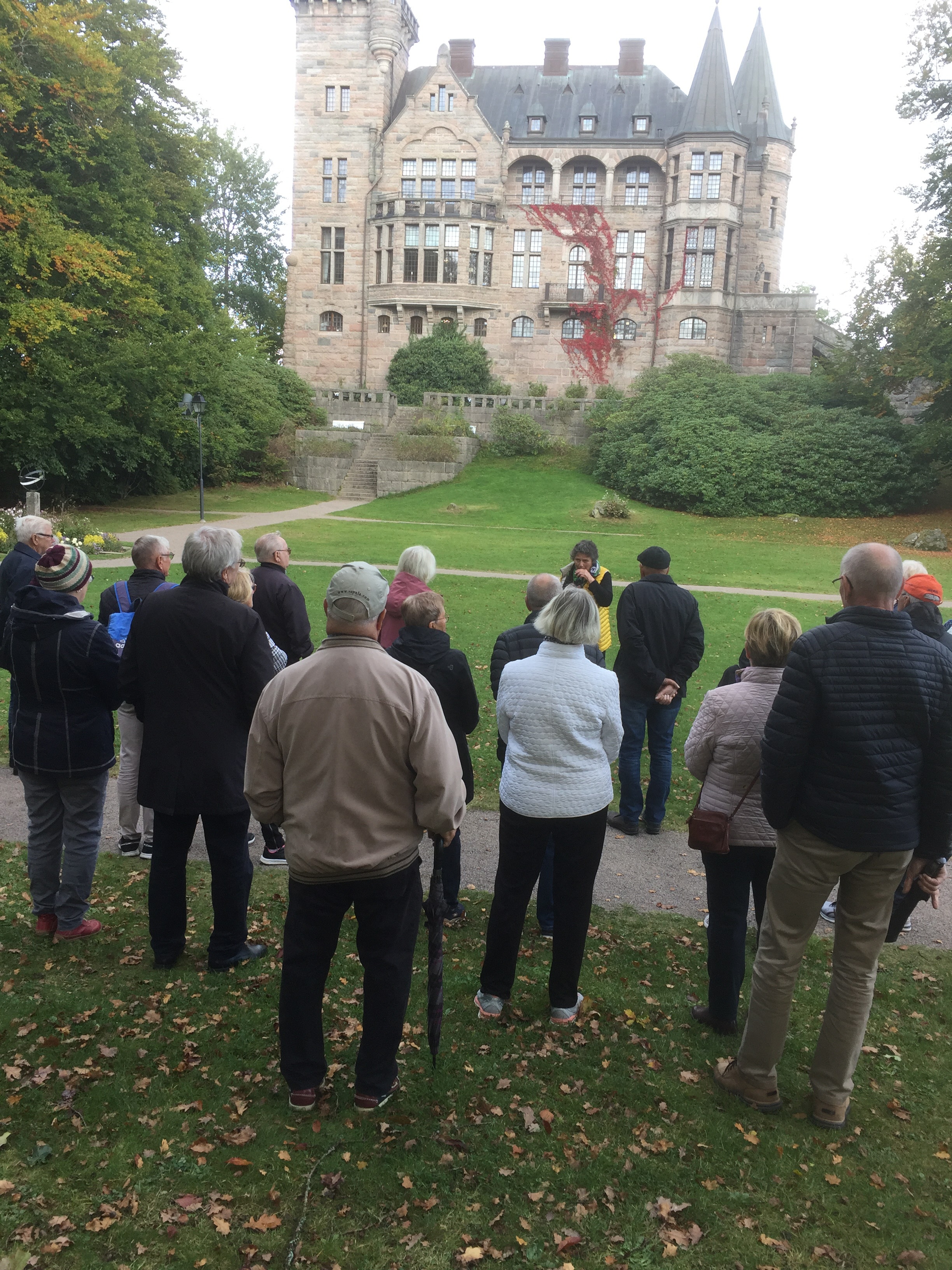 Vår första aktivitet blev en historisk vandring omkring Teleborgs slott med Vibeke Hyltén- Cavallius som ciceron. En mycket trevlig vandring.