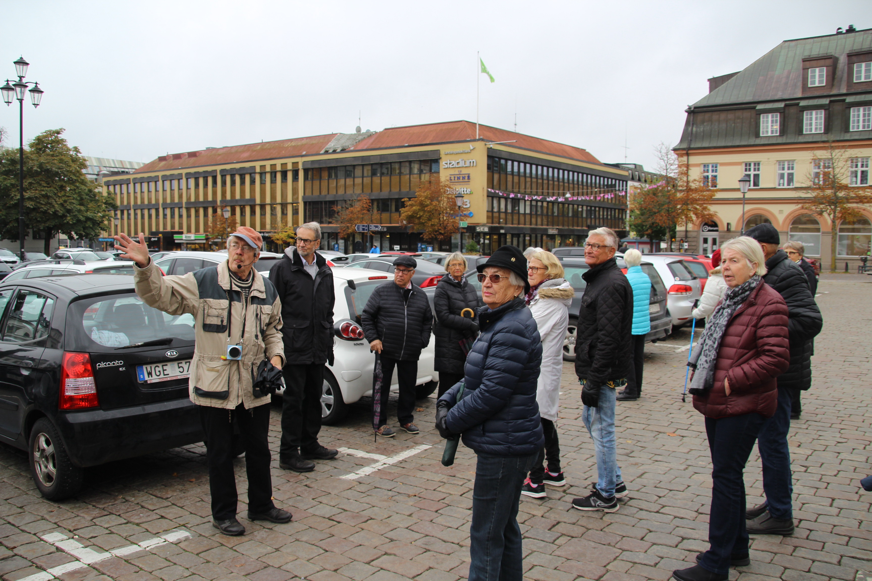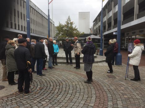 Idag gjorde vi en stadsvandring i Växjö city med Åke Svensson som ledare. Åke gav oss en mycket levande bild av Växjö genom tiderna. Vi var en grupp på 20 personer och det blir en ny grupp om några dagar.