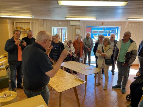 Dagens studiebesök började på Mohedatoffeln där Andreas Warme berättade om företaget och toffelproduktionen. Så gick färden till Härlövs Skafferi där det på en solig altan blev kaffe och god smörgås.