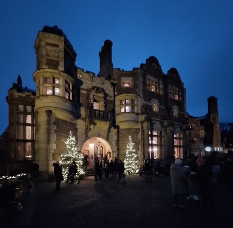 Tjolöholms slott. Ett imponerande och vackert slott i kvällsljuset. Den 7 december var vi där: SPF:s julmarknadsresa. Från Ingelstad for vi till Kvibille gästgiveri där det serverades en "jullunchbuffé" Det betyder: inte fullständigt julbord, men en Janssons frestelse tillsammns med sill m.m. fullbordade verket. Tjolöholms julmarknad innehöll allt vad man kan begära. En mycket fin julmarknad. I decembermörker åkte vi tillbaka till Kvibille för en rejäl smörgås och kaffe, där vi även kompletterade julmarknadsinköpen med Kvibilleost. En fin dag i trevligt sällskap.