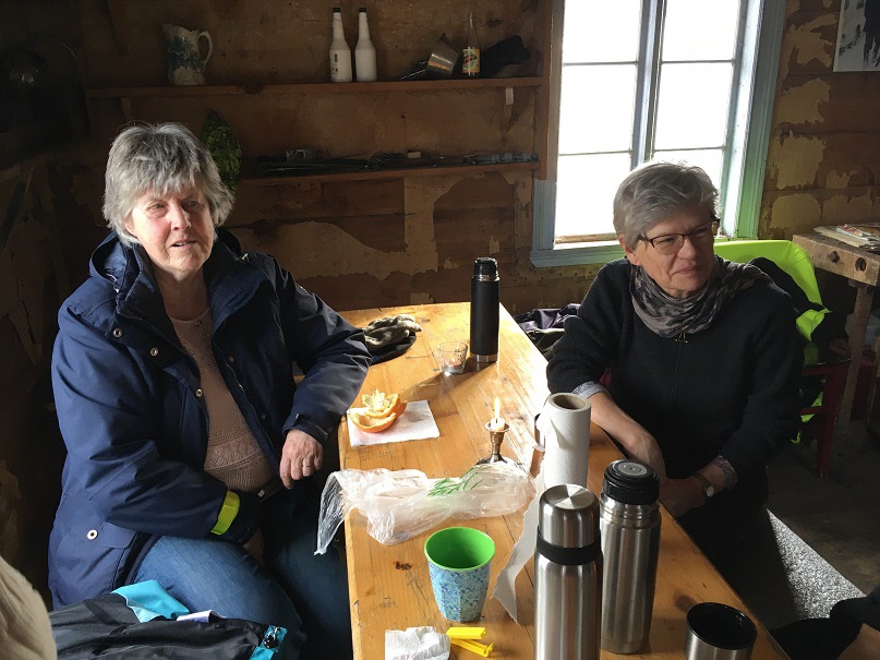 Ulla och Lena vid fikabordet. -