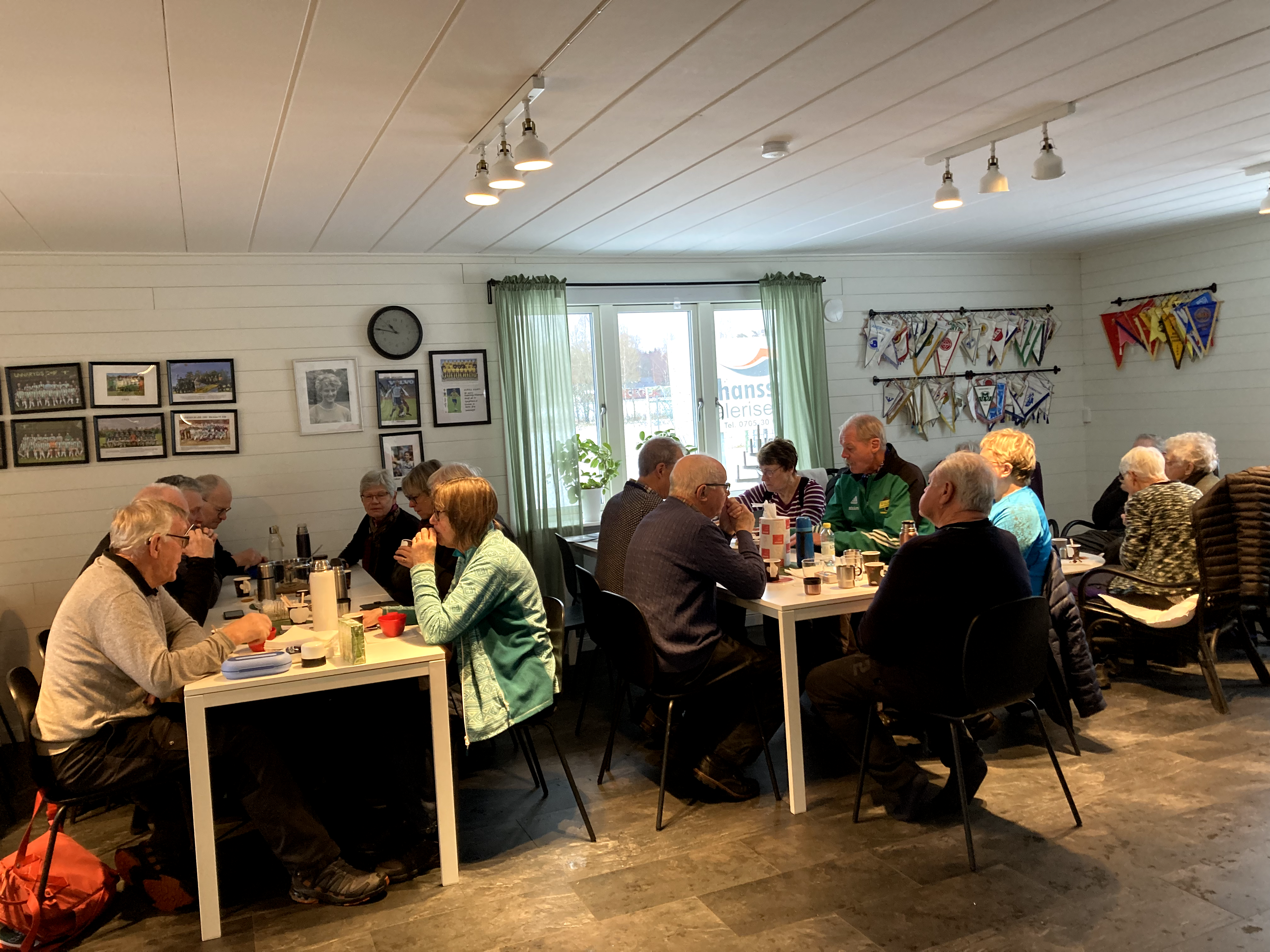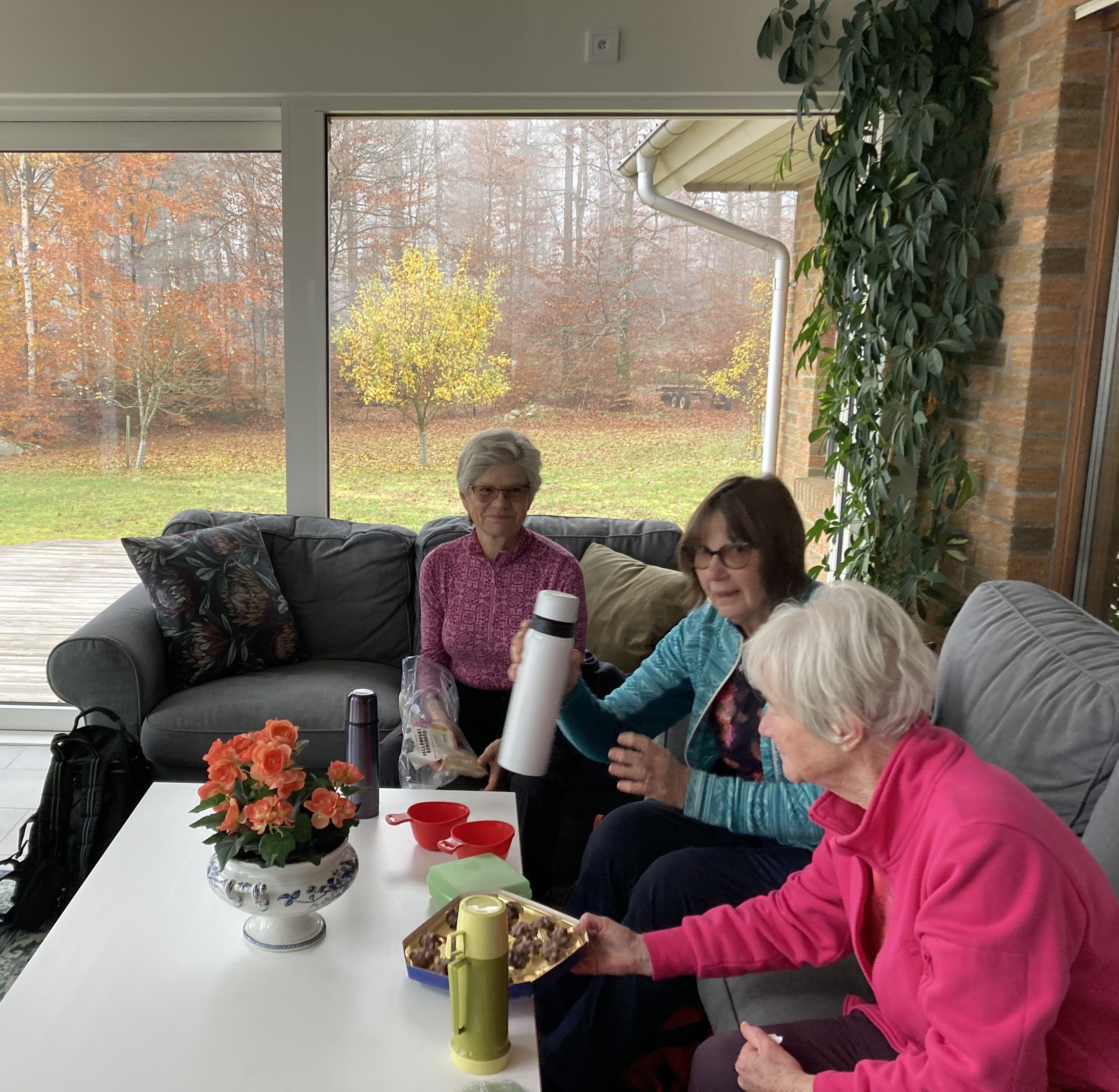 Träff på Träffpunkten efter promenad på Lidhultsåsen. -