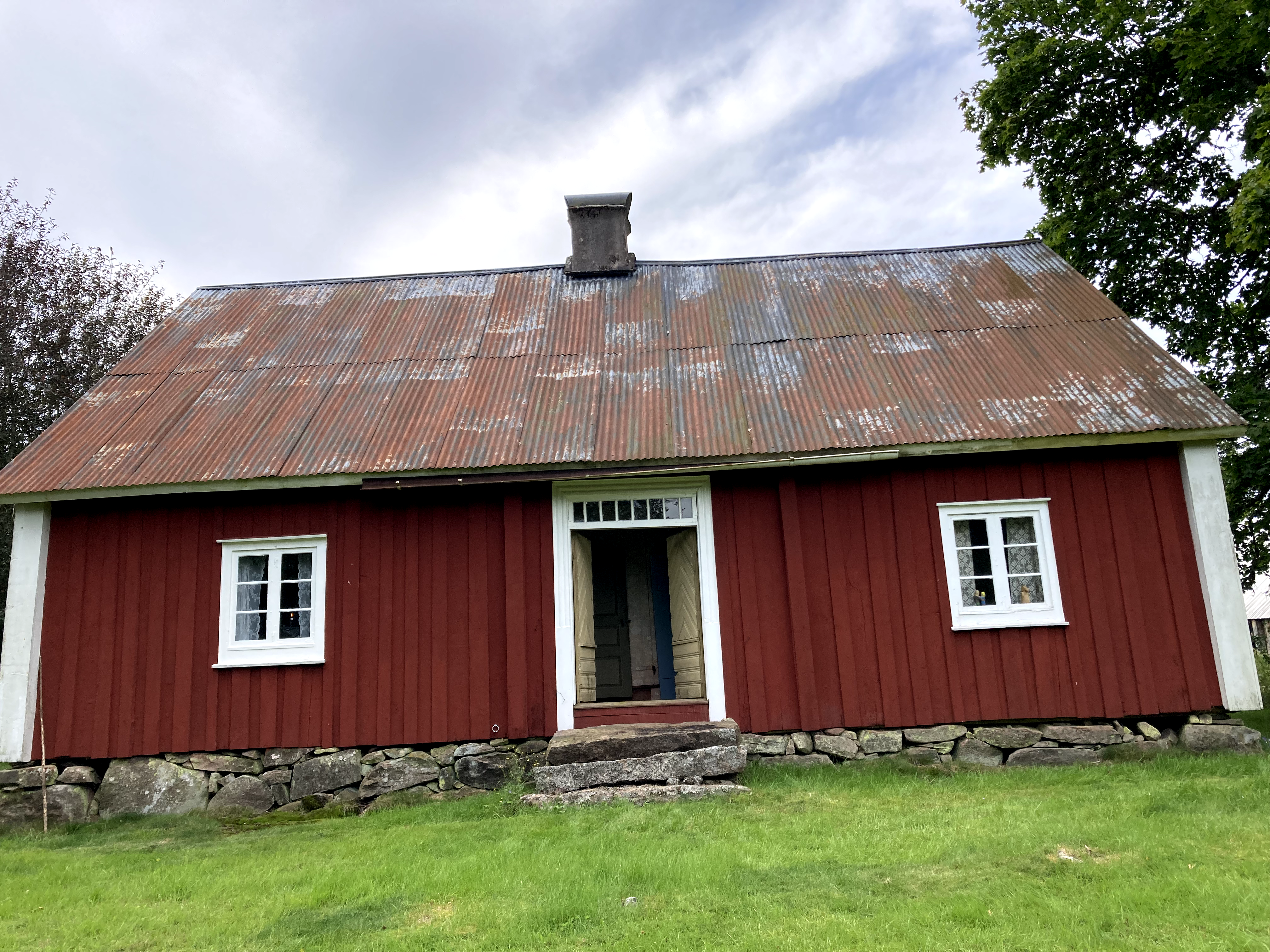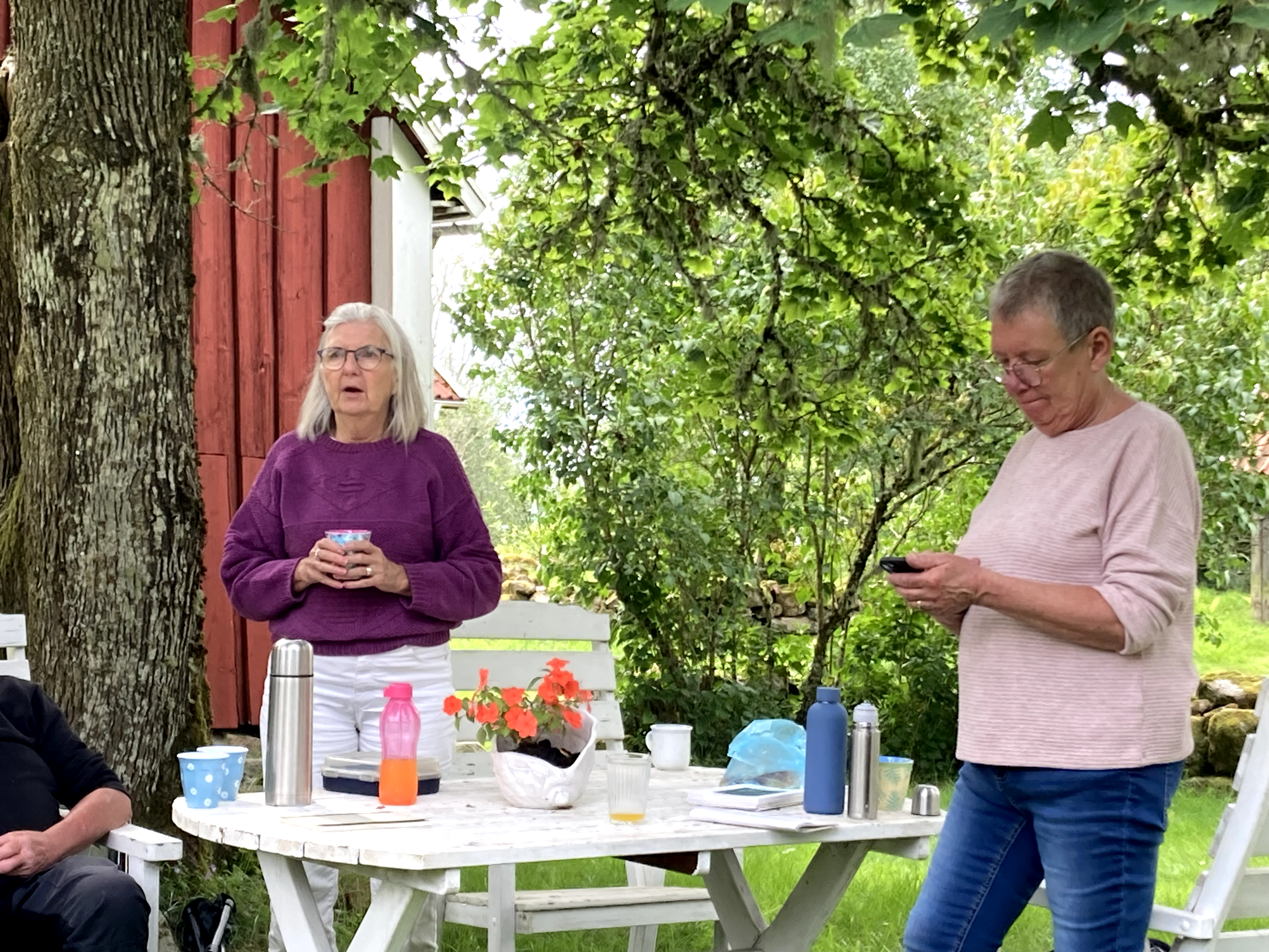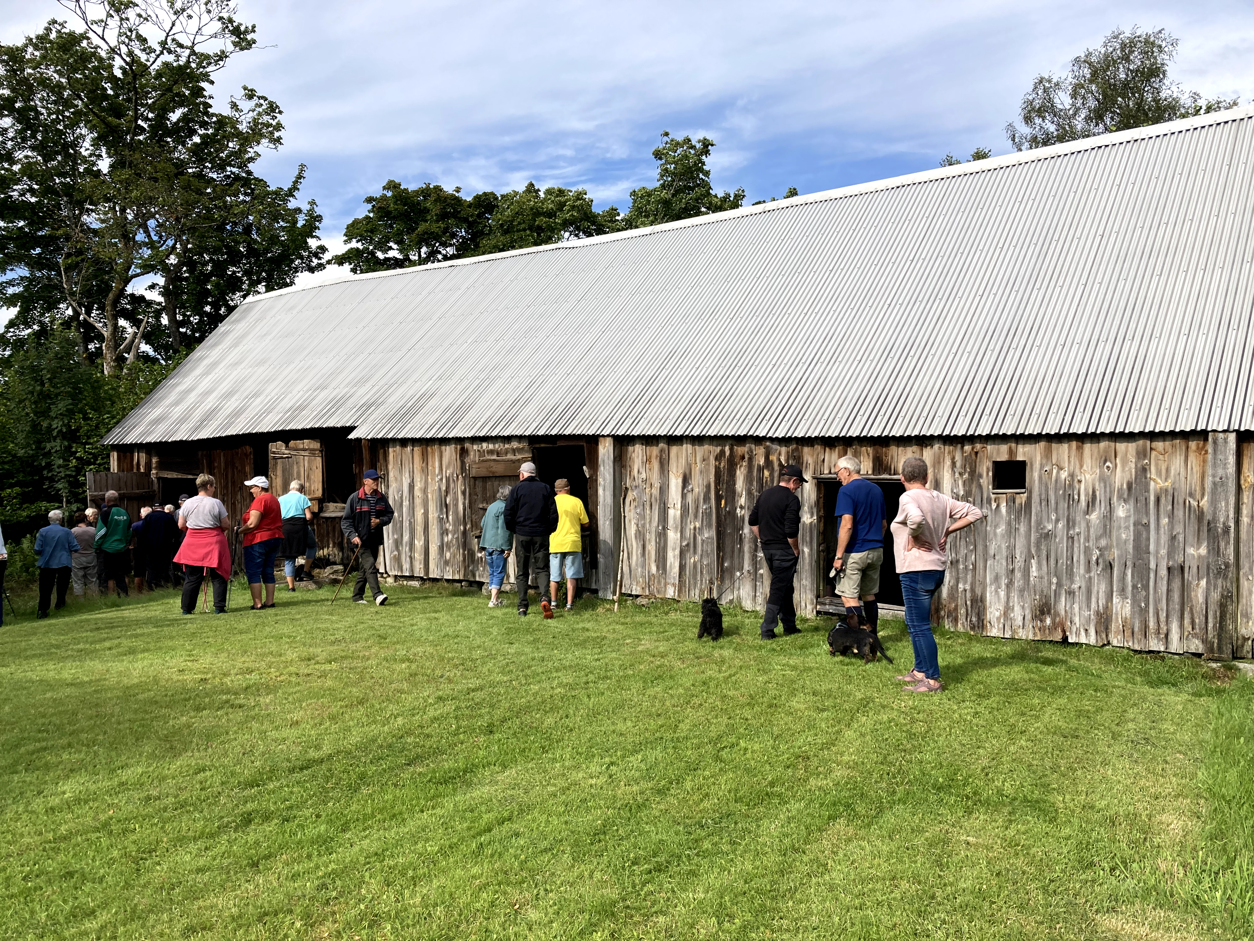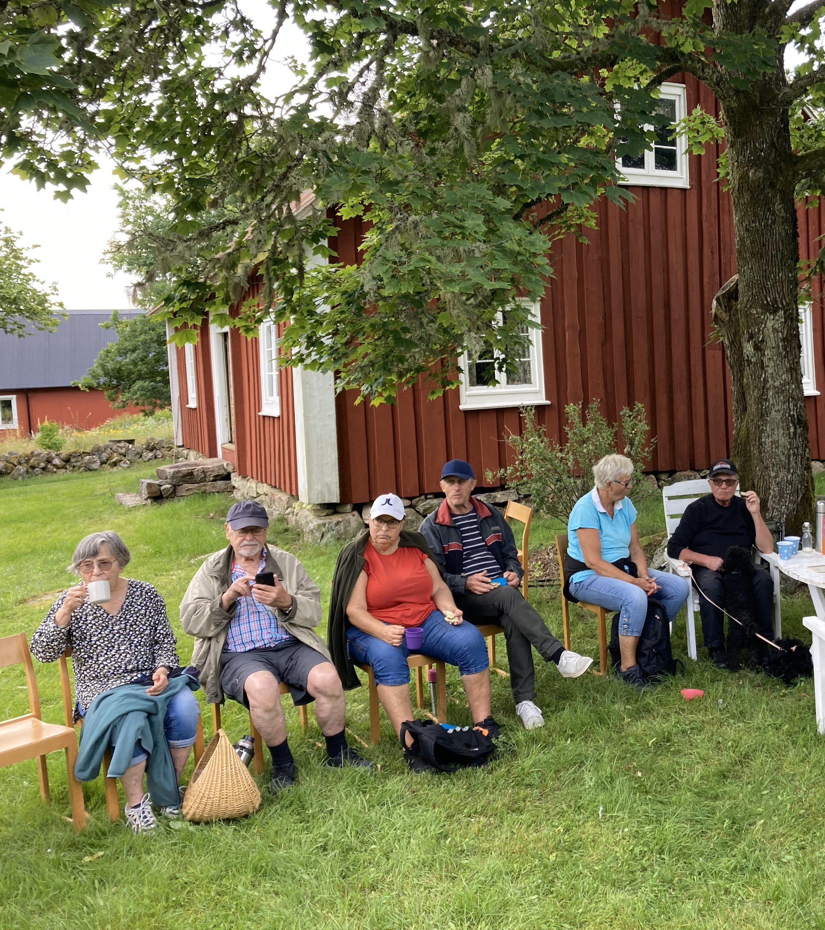 Idel nya mål, Källshults hembygdsgård där förutom kortare promenad kunde titta på en utställning av gamla broderade bonader. Vi bedökte Tildas stuga och tittade in i det riktigt gamla ladugården. Hembygdsföreningens ordförande, Margareta liksom föreningens kassör, Marie berättade mycket inlevelsefullt och intressant om Tilda liv och leverna.