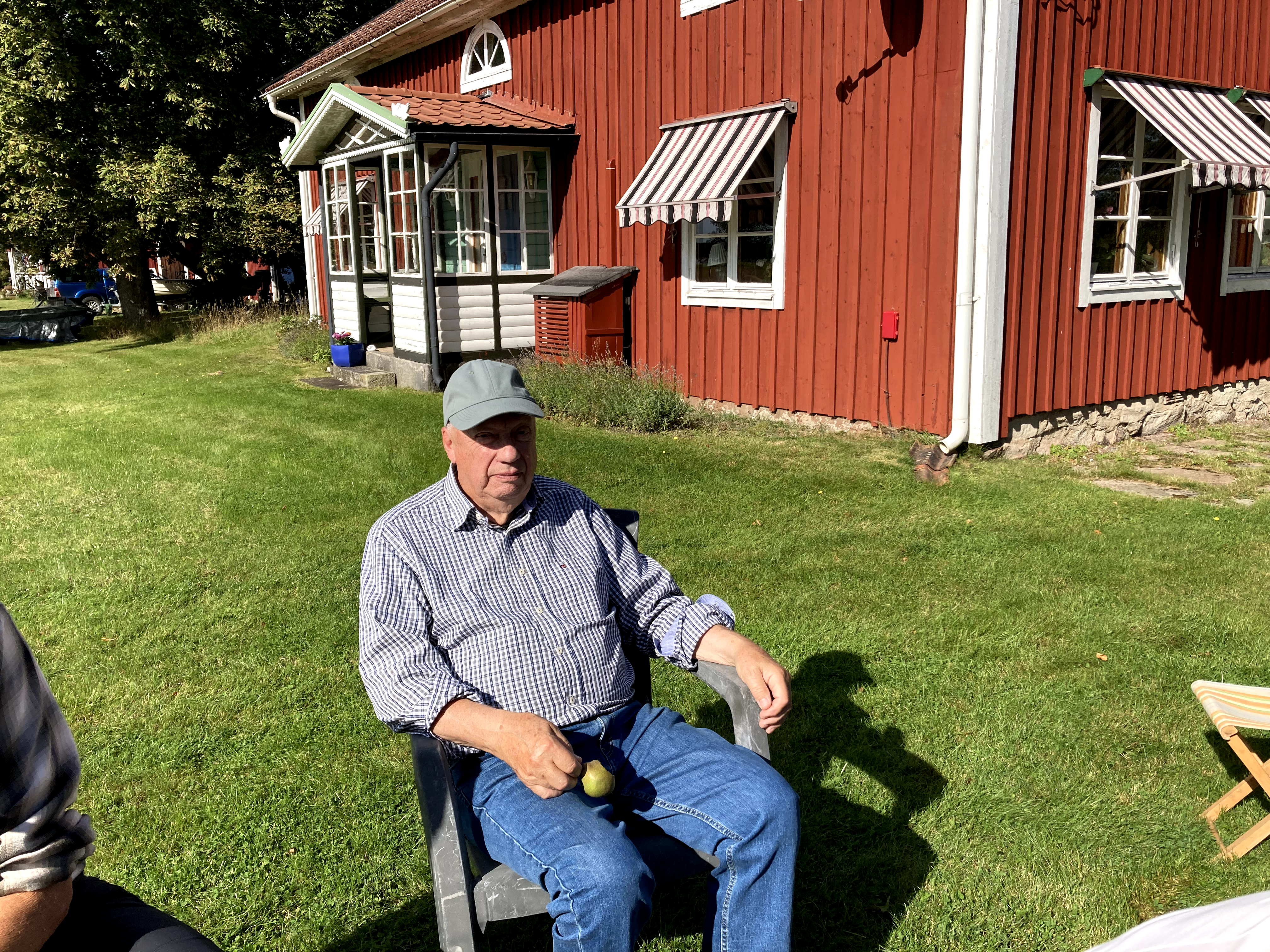 Vår ciceron i Vallsnäs framför gården som varit säteri. -