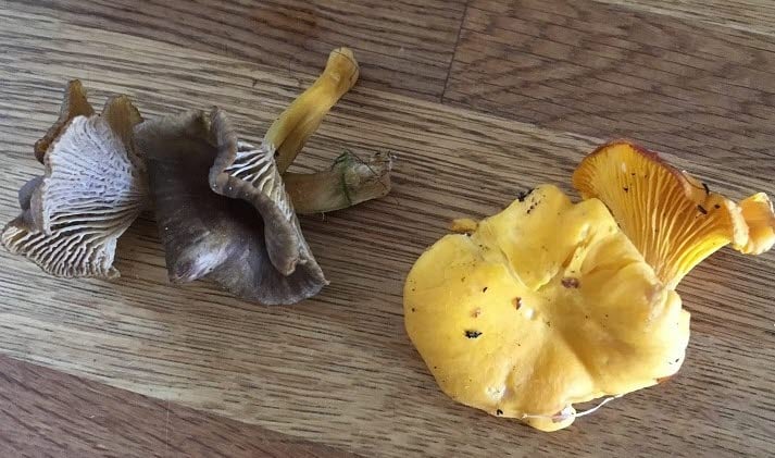 Nu plockar vi inte enbart dessa: trattkantarell och gul kantarell. |