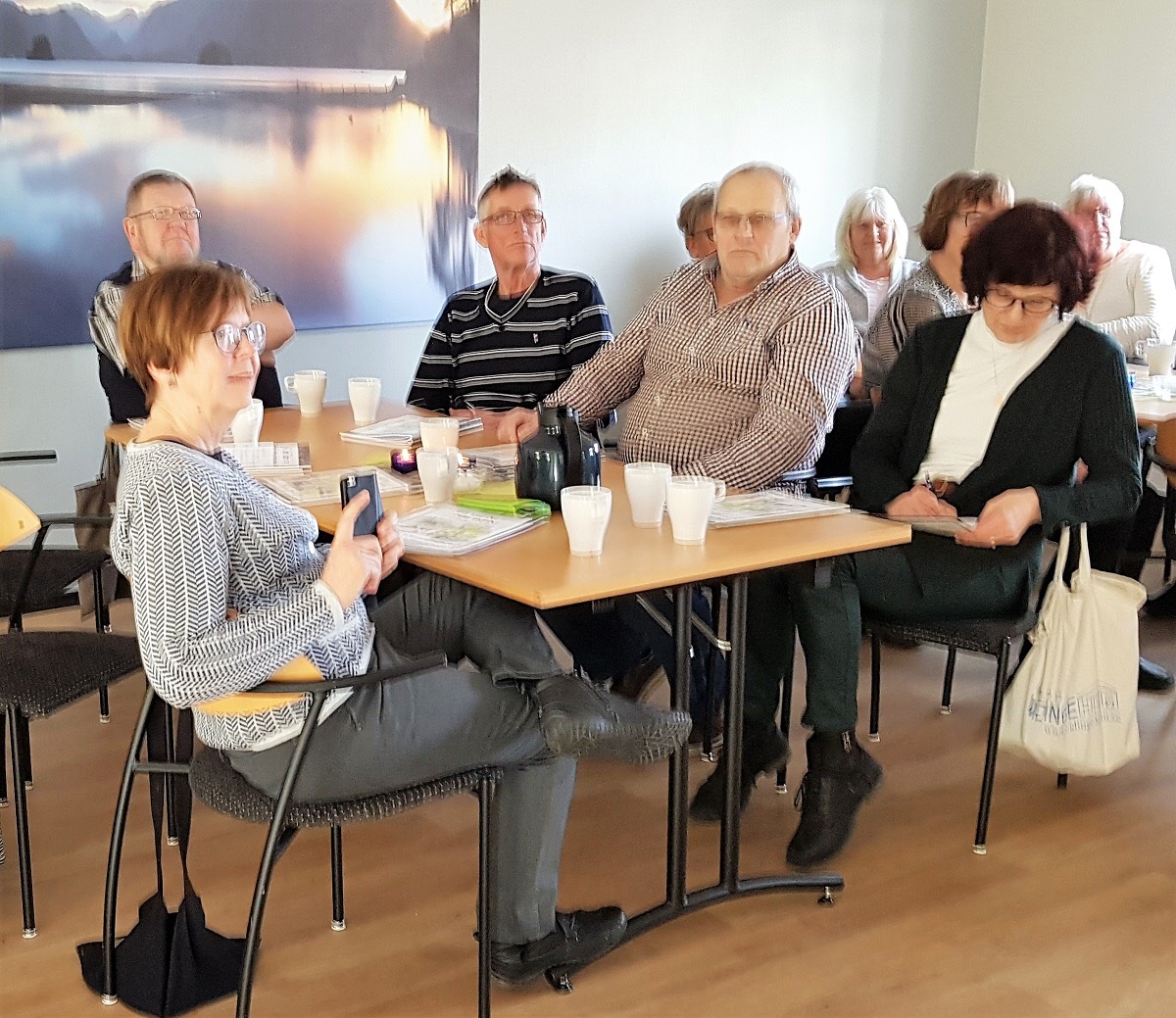 Studiecirkel-grupperna "Dialektord" hade sista träffen gemensamt i "Kvartersstugan" på Skansvägen.Tomas Gustafsson från Brittatorp underhöll med lite "Pelle Näver" , då inte Margareta Westström (författaren till studiecirkelmaterialet) kunde ställa upp. Rågkringlor från Estvalls med smör och ost smakade bra till kaffet.26 deltagare i 3 grupper har träffats 4 gånger och ledare har varit Marianne Svensson,Leif Karlsson och Alice Persson.