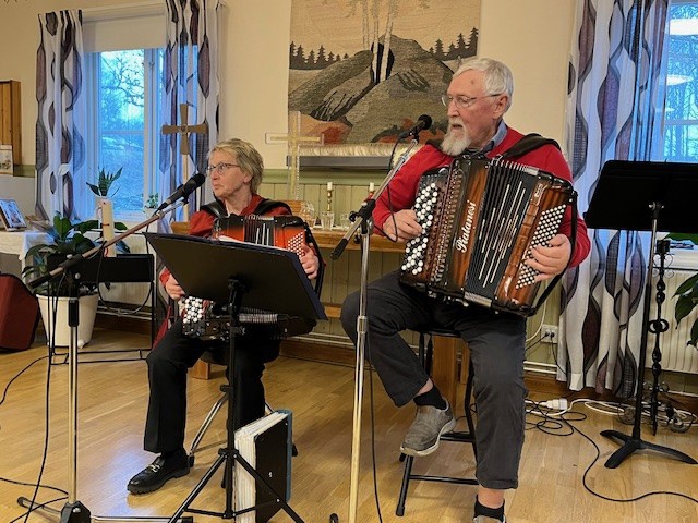 För underhållningen svarade duon ”Yngel”, Yvonne Elmgren och Nils-Gunnar Lundgren, som på dragspel framförde ett varierat program. Ett stort tack till er, för att ni på kort varsel kunde komma och underhålla oss. Femtinge teater, som var bokade, fick ställa in på grund av sjukdom.