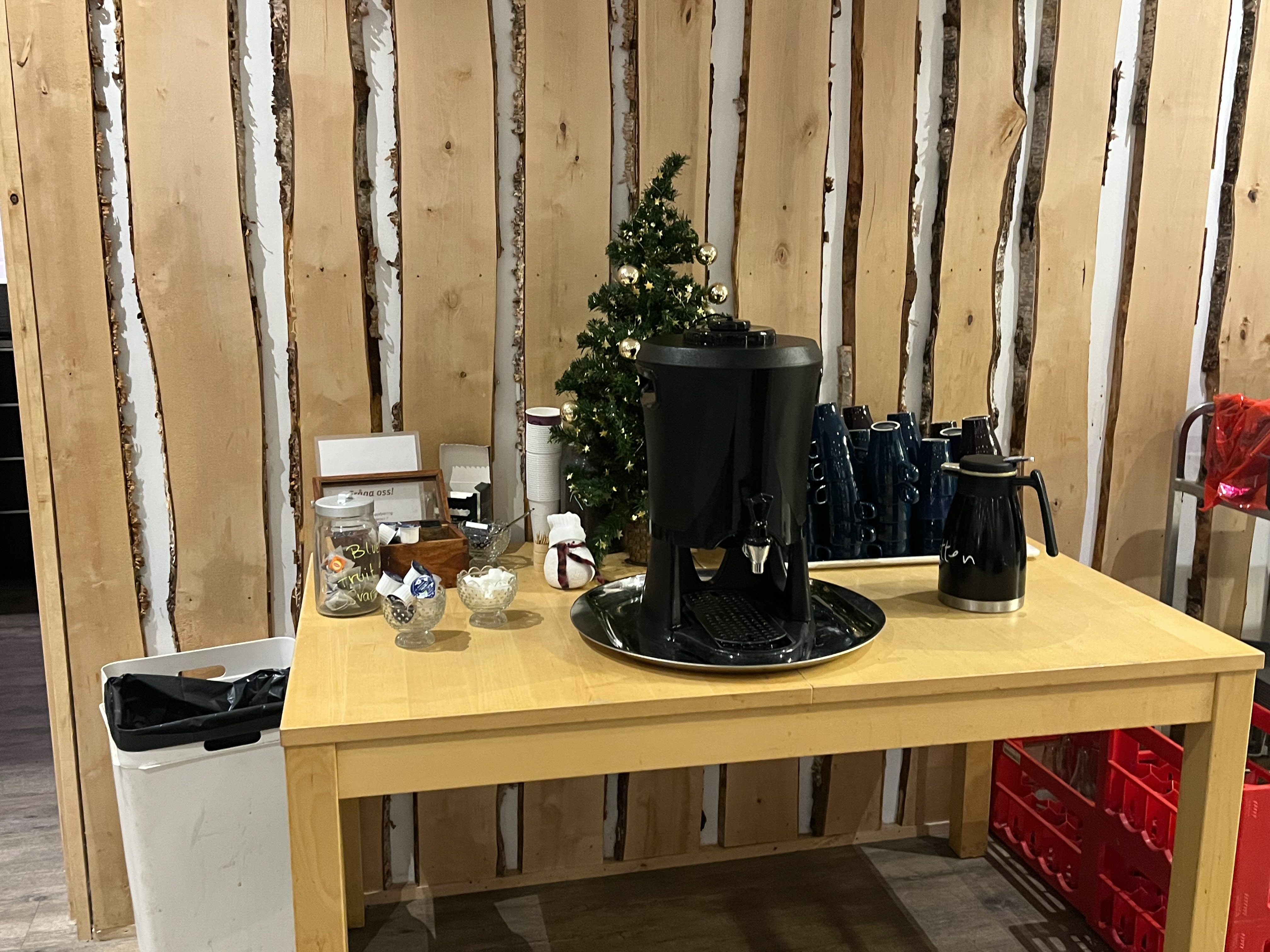 Här kommer det att stå nybryggt kaffe. Gott efter all mat. -