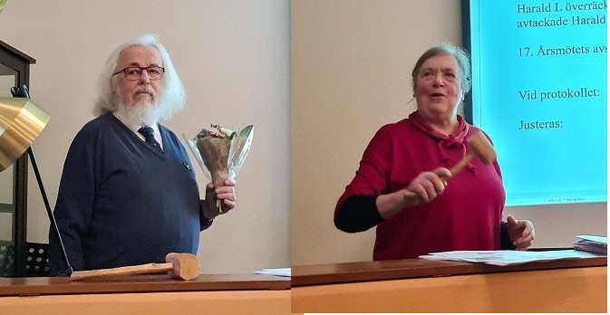 Efter våra årsmöteshandlingar avtackade vi Harald som varit vår ordförande i 13 år med blommor och varma applåder. Därefter tog Birgitta hand om klubban och fortsatte mötet. Vi börja med att njuta av rejäla bitar smörgåstårta. Sedan var det Margit assisterad av sin syster Viola som berättade om hur stora mängder av Furubys befolkning utvandrat till Amerika. De var långa tuffa resor innan man nådde svensk bygderna i Amerika. Det finns många Furuby kopplade namn på vägar , hus och orter. Vi tackade Margit och Viola för att dom delat med sig av sina resor, bilder och kunskap. Vi avslutade mötet med kaffe och lotteridragning