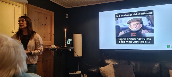 Maria Fogelström från Region Kronobergs Trafikmedicinska enhet höll föredrag om åldrande, bilkörning och trafiksäkerhet. Det var både allvarlig och men hoppfull information med många nyheter. Vi fortsatte med ärtsoppa, smögåsar, kaffe och kaka. Som vanligt avslutade vi med lotteri dragning som gav de flesta hopp om bättre lycka nästa gång.