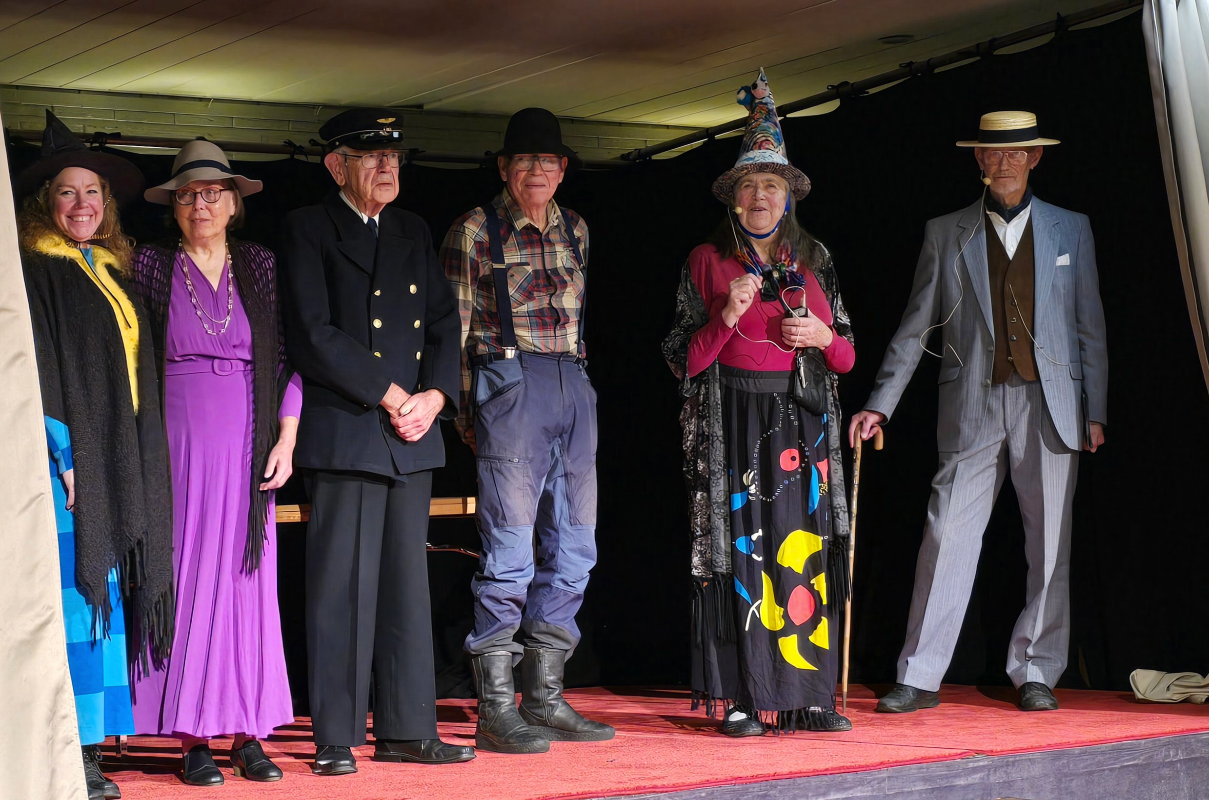 Vi var 6 personer som berättade och spela teater och därefter fick mota publikens långa aplåder
