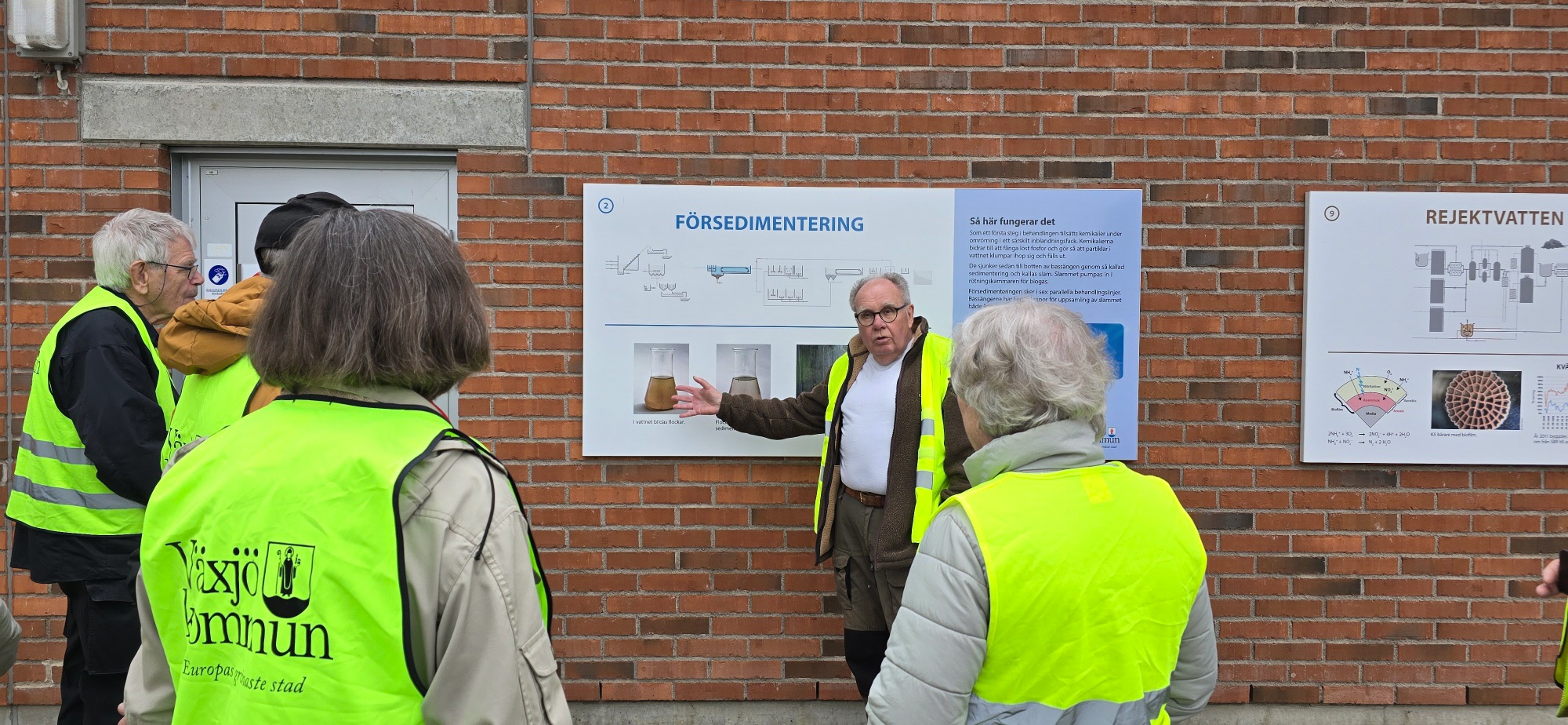 Cirka 20 medlemmar deltog och fick se vad som händer med de vi spolar ut i avloppet från toaletter och vaskar, som via rörsystem når reningsverket. Vår guide var en före detta lärare och beskrev förloppet på ett lysande sätt.