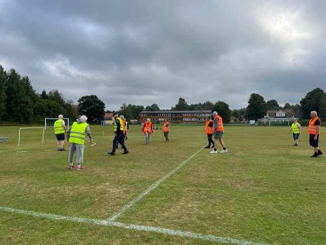 Gåfotboll är det på fredagsförmiddagen kl 10.00. Efteråt fikar vi tillsammans.
