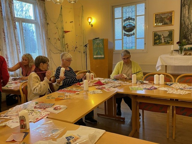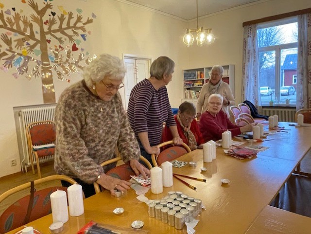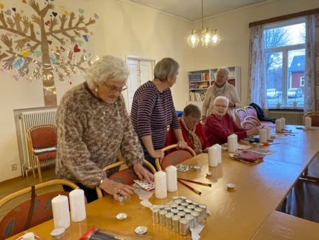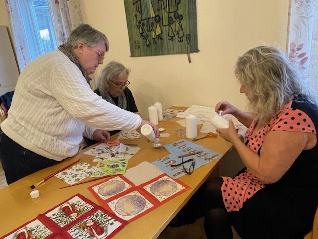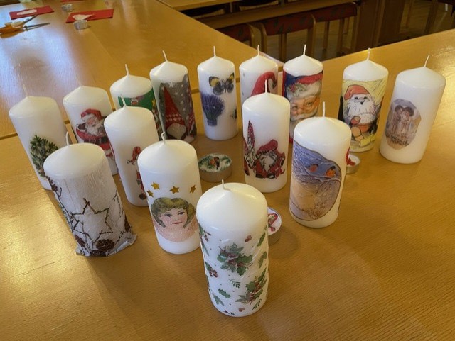 På trivselträffen i november hade vi pyssel med Ingrid. Vi gjorde decoupage på ljus.