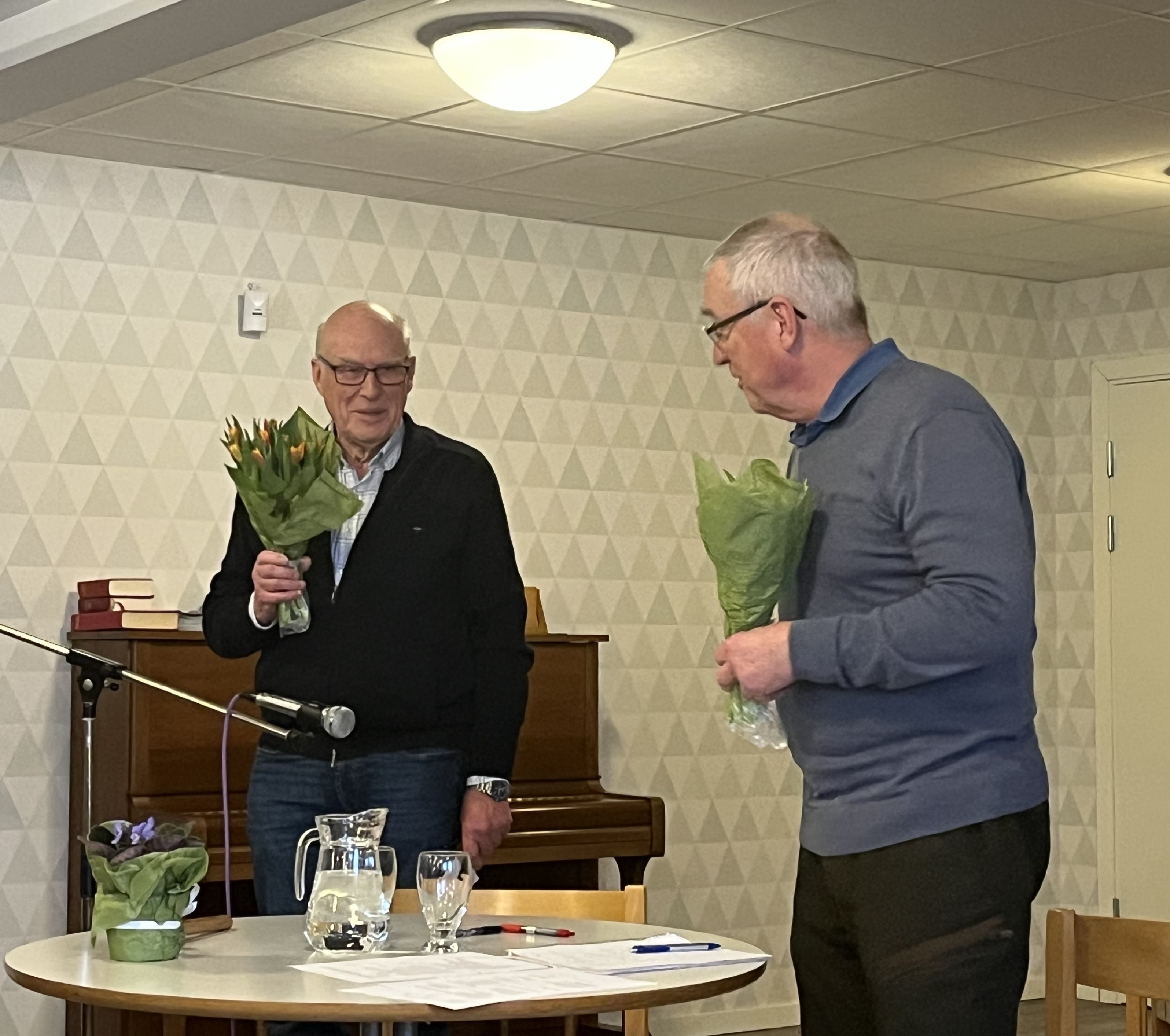 Gunnar Petersson ledde årsmötesförhandlingarna och sekreterare var Magnus Hasselqvist. Efter kaffe och semla som föreningen bjöd på vidtog körsång av SjungandePensionärsFlammorna under ledning av Gunnel Svensson och sedvanligt blomlotteri avslutade eftermiddagen.