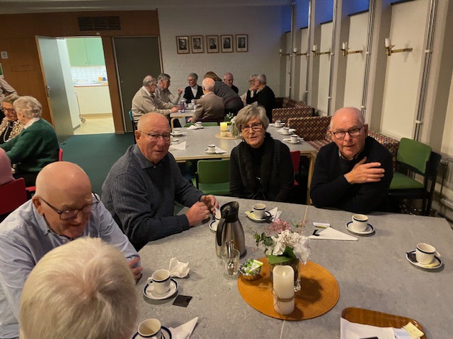 Kaffeborden stod som vanligt dukade och denna eftermiddag kändes det extra trevligt att dröja sig kvar en stund i värmen i stället för att leta upp en igensnöad och kall bil på parkeringen för vintern hade ju anlänt med besked denna dag.