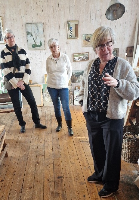 Mer än 50 SPF-seniorer besökte Sven Ljungbergsmuséet en vintrig och kall februarieftermiddag. Eftersom vi var så många så delades vi in i tre grupper och vi fick se inte bara den pågående Jenny Nyströmutställningen utan också Sven Ljungbergs ateljé och Sven och Ann Margret Dahlquist-Ljungbergs hus. Vi hann dessutom med att fika.