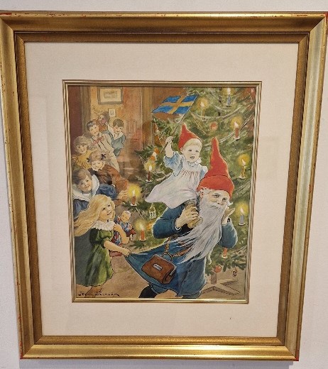 I den gruppen som jag var med i började vi med Jenny Nyström. Vilken konstnär! Jag har tänkt på henne i samband med tomtar på olika julmotiv. Men det var mycket annat hon hann med under sitt 93-åriga liv. Jenny började som 11-åring på Valands målarskola och hon utbildade sig även på Konstakademin. Hon fick försörja både sig själv och sin familj som illustratör. Sonen Curt blev också konstnär.