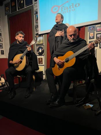 På kvällen fick vi uppleva Fado i en liten trevlig lokal, full med foton på väggarna. Duktiga studenter som spelade och sjöng. Ett glas portvin som avslutning på deras innergård. Det blev en kvällspromenad genom de vackert upplysta gränderna.