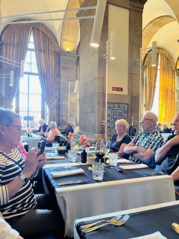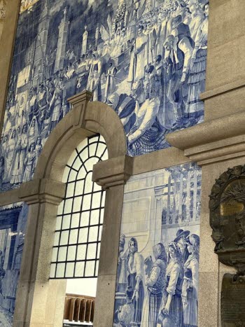 Sight-seeing nästa dag - med buss och till fots. Vi fick en fin överblick över olika delar av stan från bussen, som körde ut mot Atlanten. Floden Douro flyter ut där. Sen dags för den gamla stadsdelen. Uppe från katedralen hade vi en fantastisk utsikt, ner över gränderna med gamla mysiga hus och ut i fjärran. Den fina järnvägsstationen med sina azulejos, kakelplattor i vitt och blått, sammansatta till stora bilder. I Porto var det även ett inplanerat besök i en vinkällare. Efter ett utförligt föredrag fick vi naturligtvis även prova portvin. Vilka smaker!