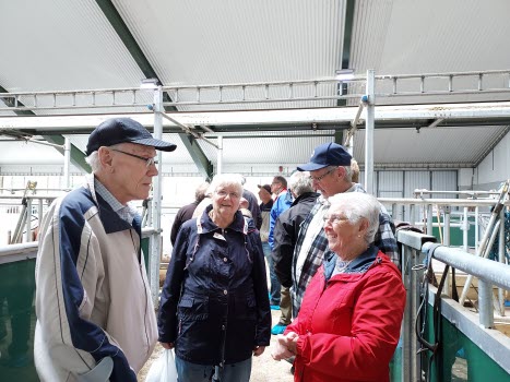 Ett fyrtiotal medlemmar från SPF deltog i studiebesöket på Jätsbygd gård. Där blev vi väl mottagna av tre generationer från familjen Haraldsson. De berättade om den satsning de gjort vad gäller uppbyggandet av den moderna ladugården med mjölkproduktion. Vi fick möjlighet att studera anläggningen som vi blev mycket imponerade av. Många frågor ställdes.