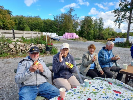 Sedan samlades vi utanför för korvgrillning och kaffe i solen.